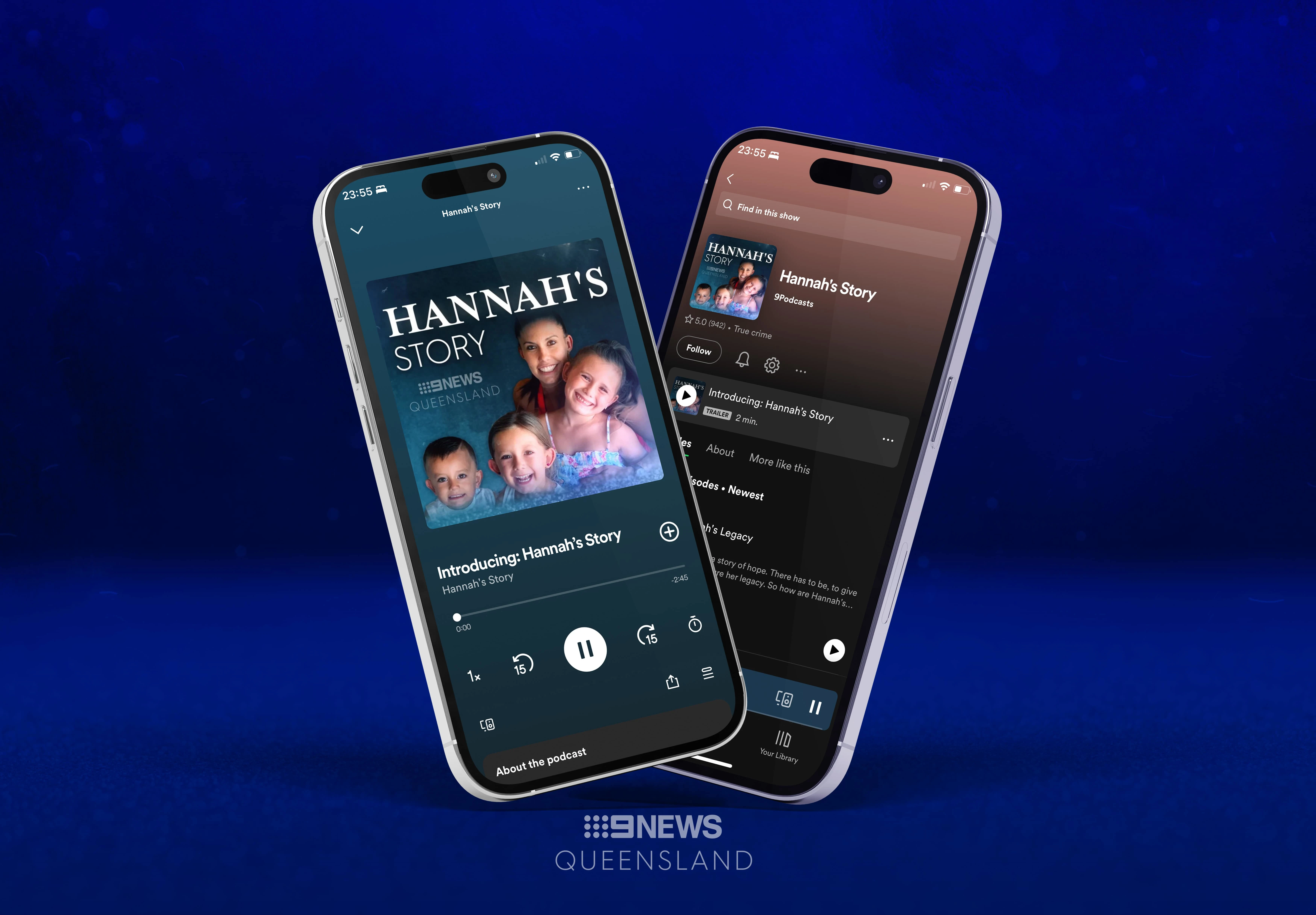 Developed the visual design for Hannah’s Story, an award-winning podcast series produced by 9News Queensland and 9Podcasts. This included creating the podcast thumbnail and a broadcast promotional video, ensuring a cohesive visual identity across platforms. Hannah’s Story has been recognised with prestigious accolades, including the New York Festivals Radio Award, Australian Podcast Spotlight Award, Kennedy Award, and the Mid-Year Walkley Award.