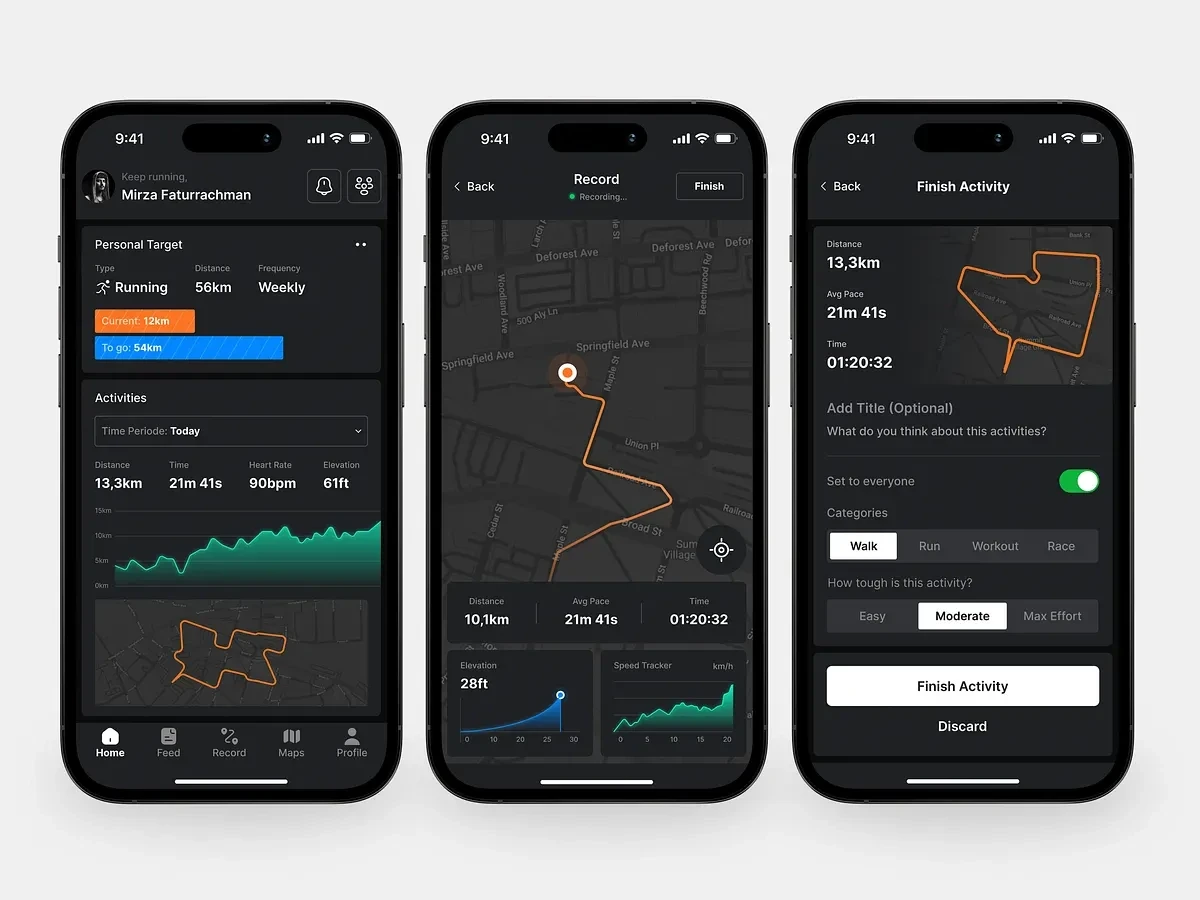 Mobile UI/UX for a modern activity tracker. Track workouts, set goals, and view progress on a clean, focused dashboard. Stay motivated and hit your targets!