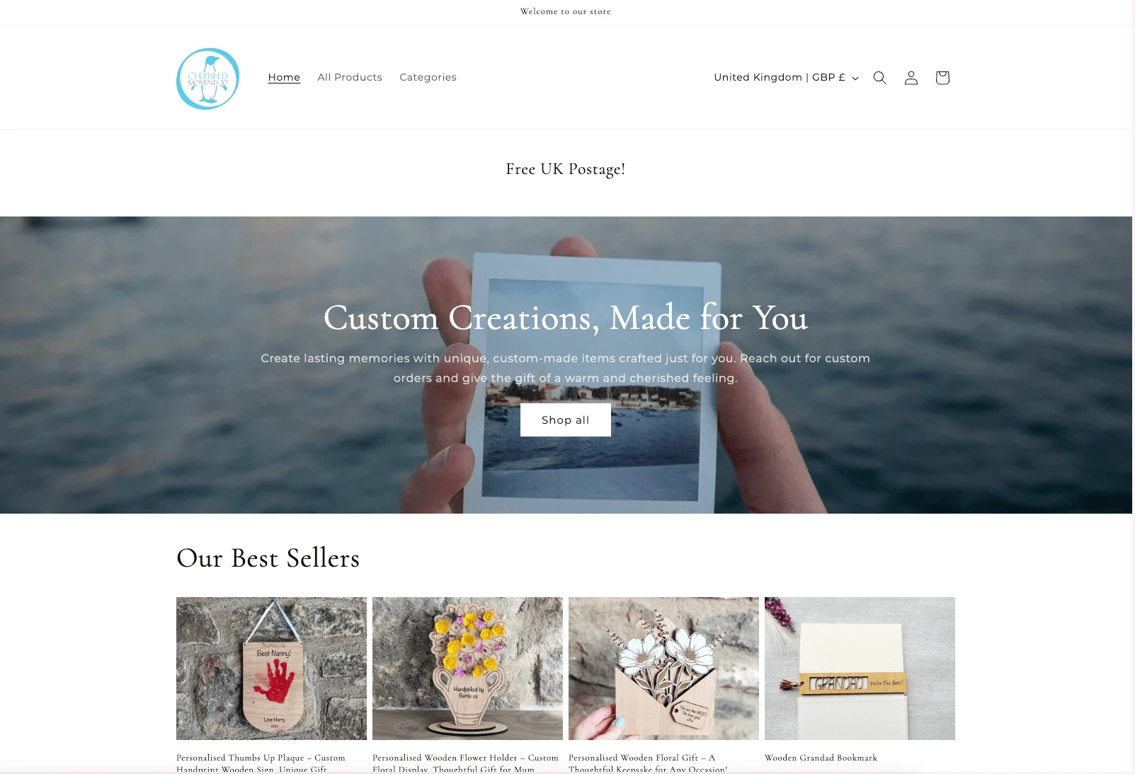 The client wanted their store to be highly customizable (image uploads, etc.) as it was a gifting shop. This was also migrated from Etsy.