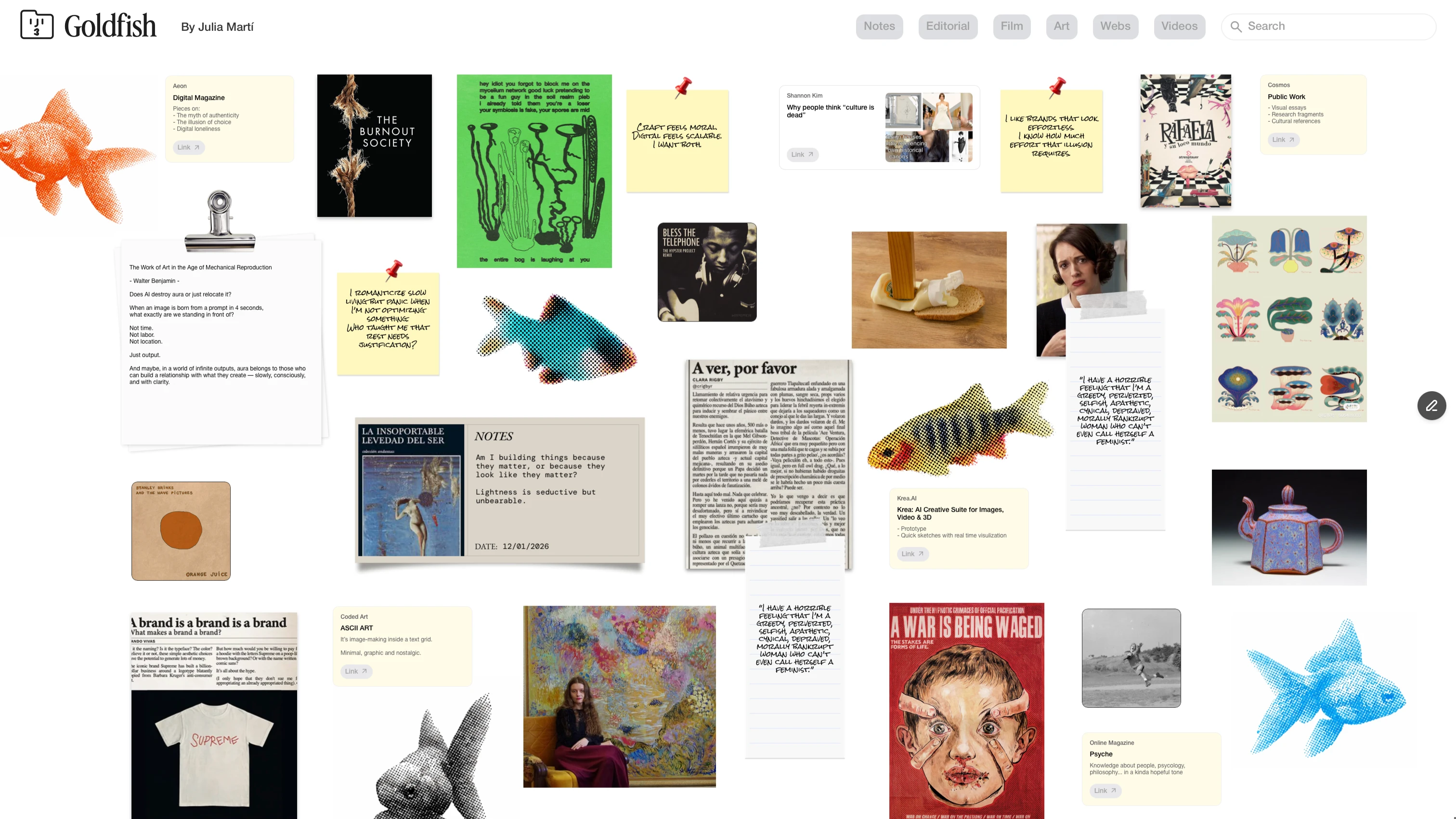 I created a digital space where ideas form through fragments, moods, and associations — where books, songs, visuals, and thoughts coexist freely.