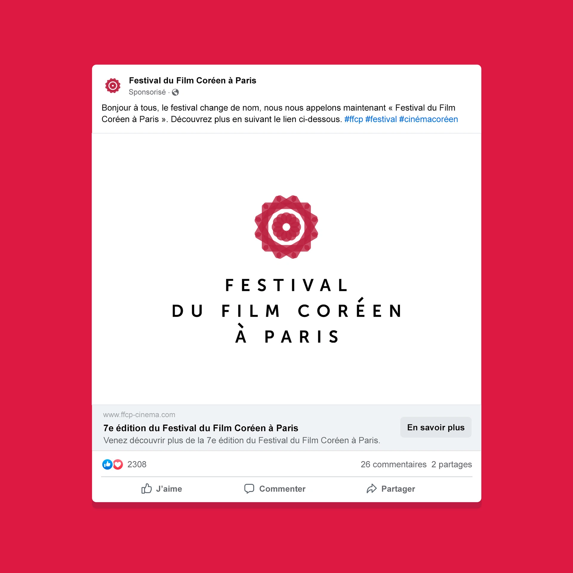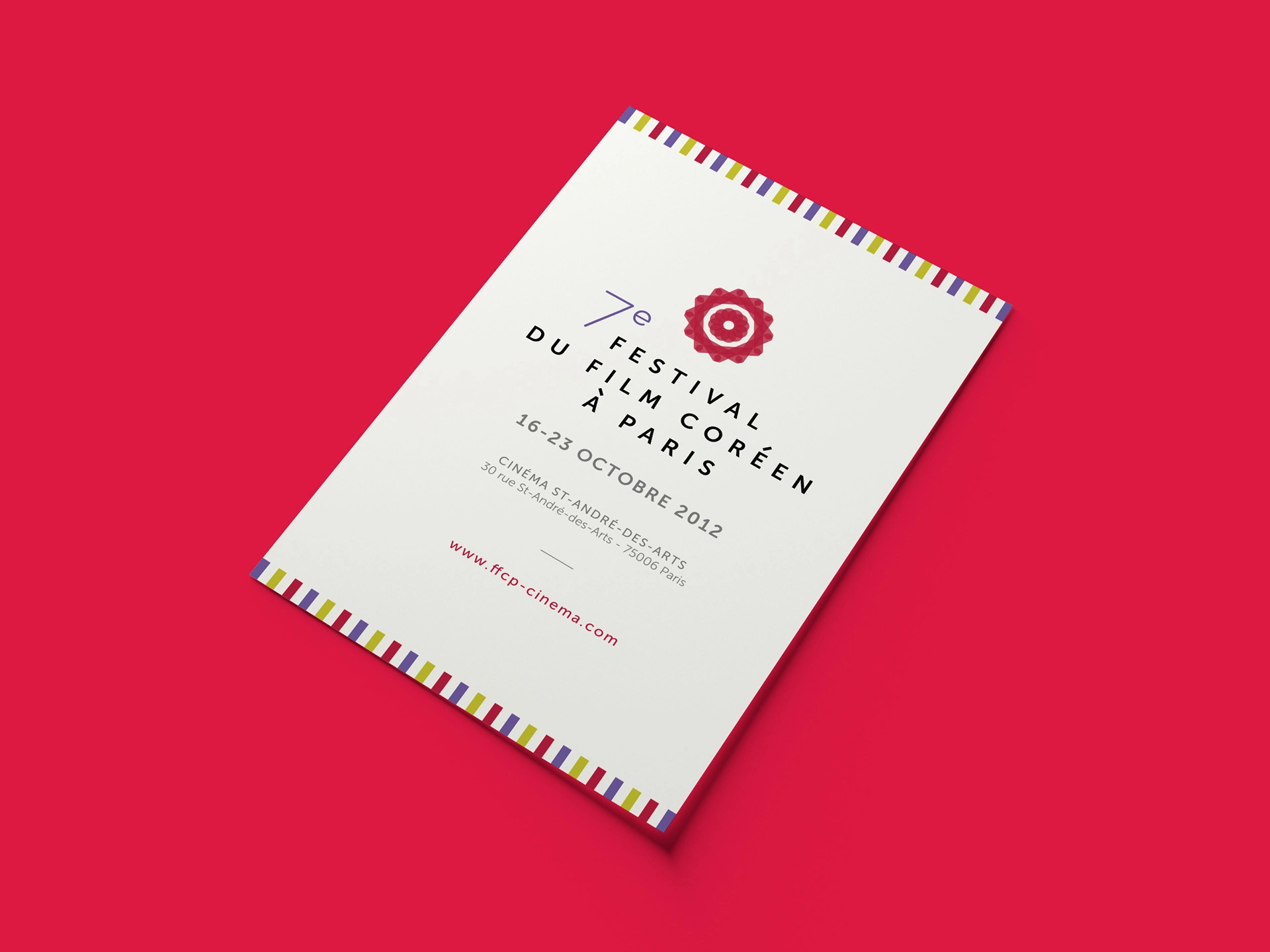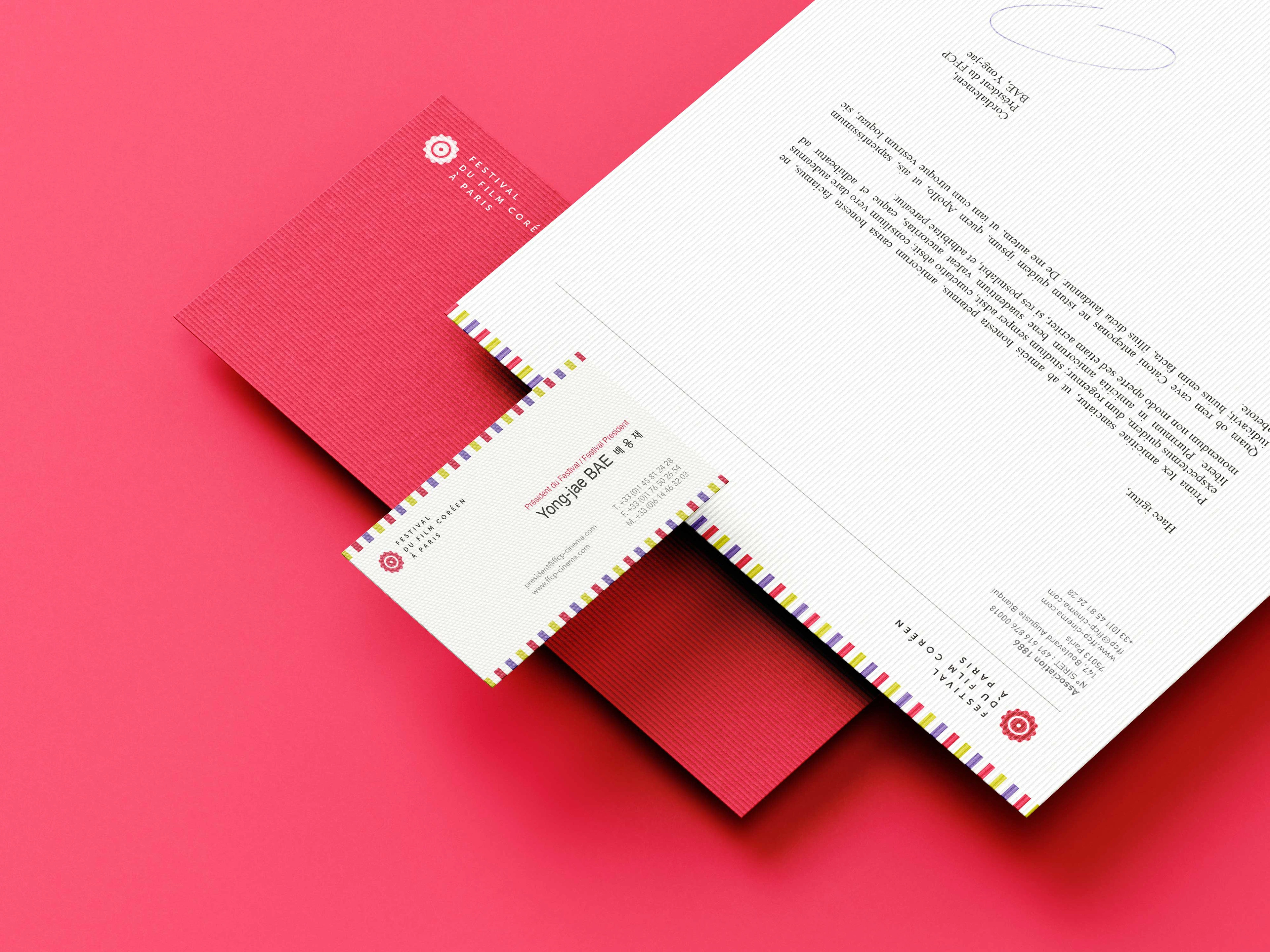 In 2012, I was asked to create a brand new visual identity for the Paris Korean Film Festival (FFCP). The festival changed its official name with a new slogan 'Passion, Originalité, Convivialité' and started to promote actively about the reborn festival on the social media and press. They were seeking for a subtle yet classy and impactful festival identity to impress the public.