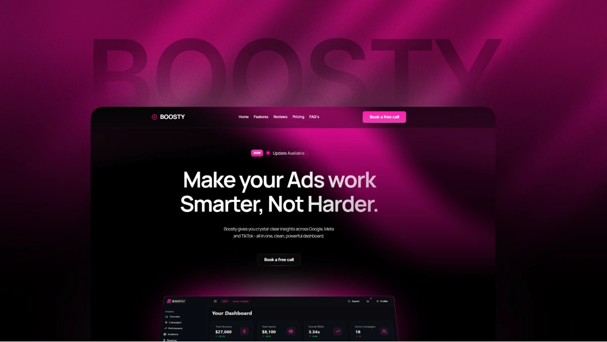 Boosty is a website created for a dashboard product designed to simplify and clarify ad campaign management.