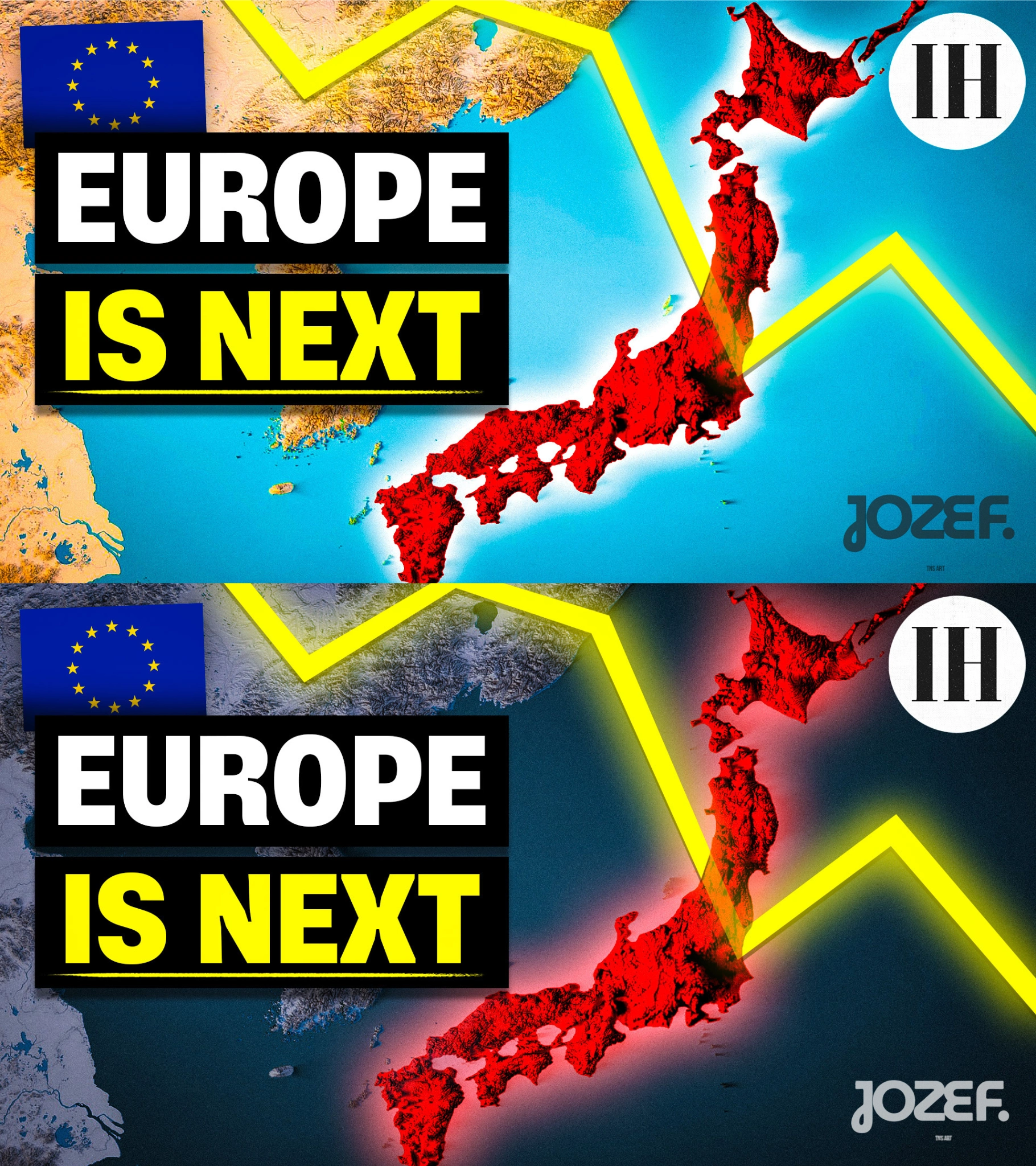I designed two custom thumbnail variations for the video: “Japan is Quietly Going Extinct and Why Europe Should be Terrified.”
