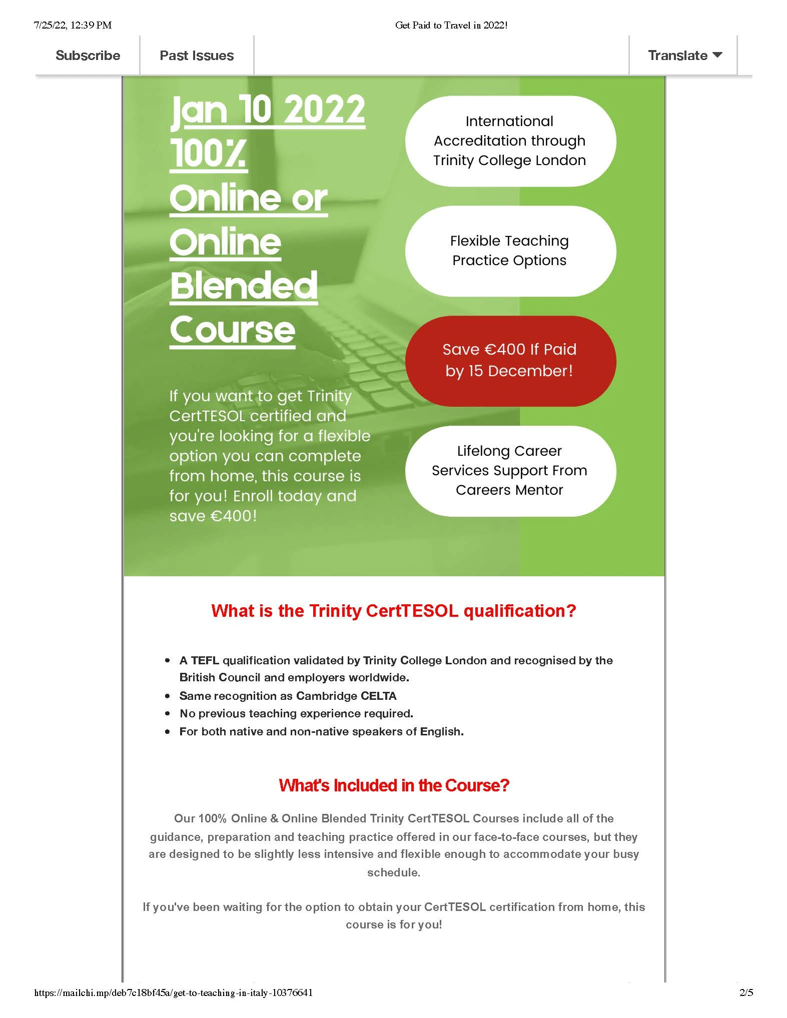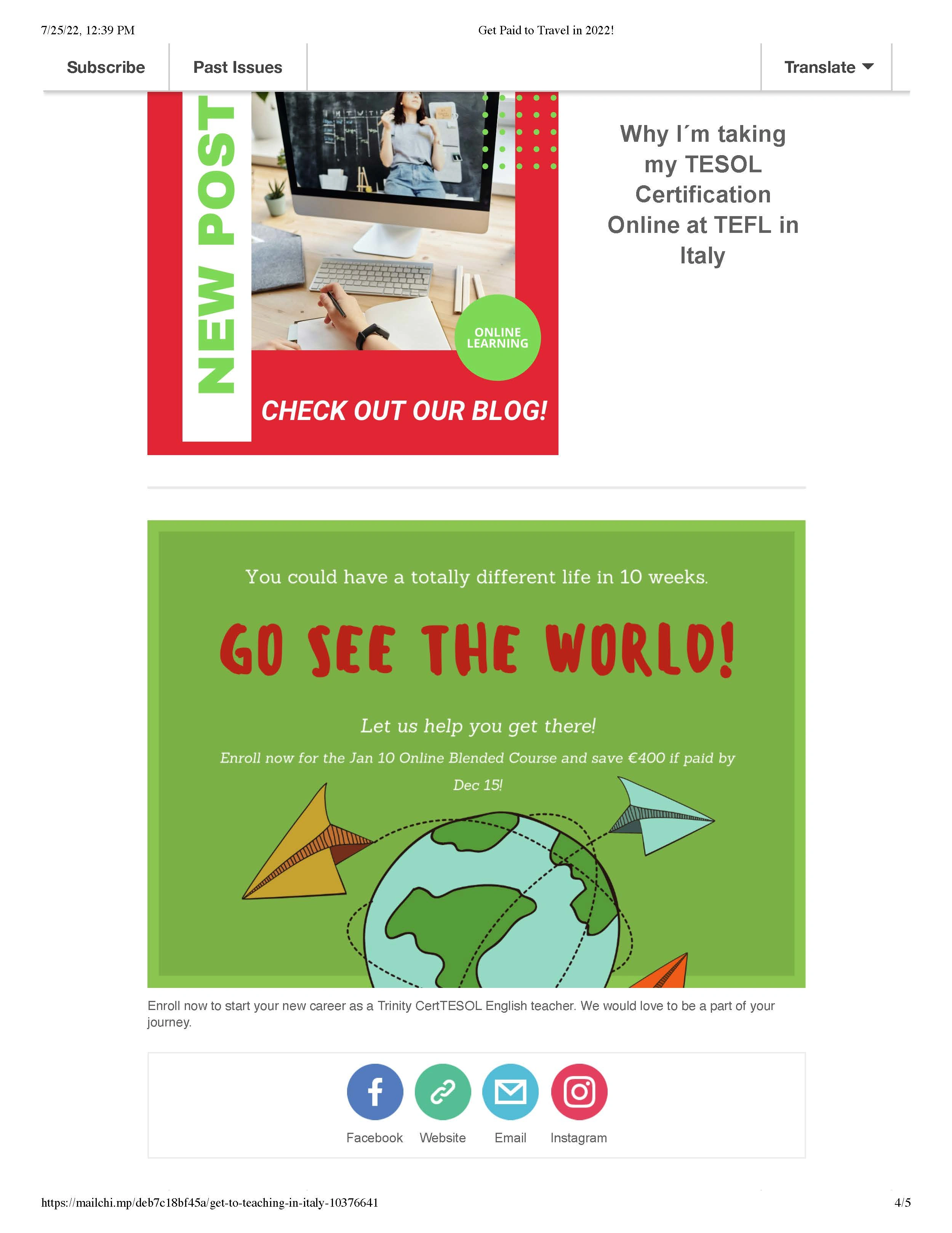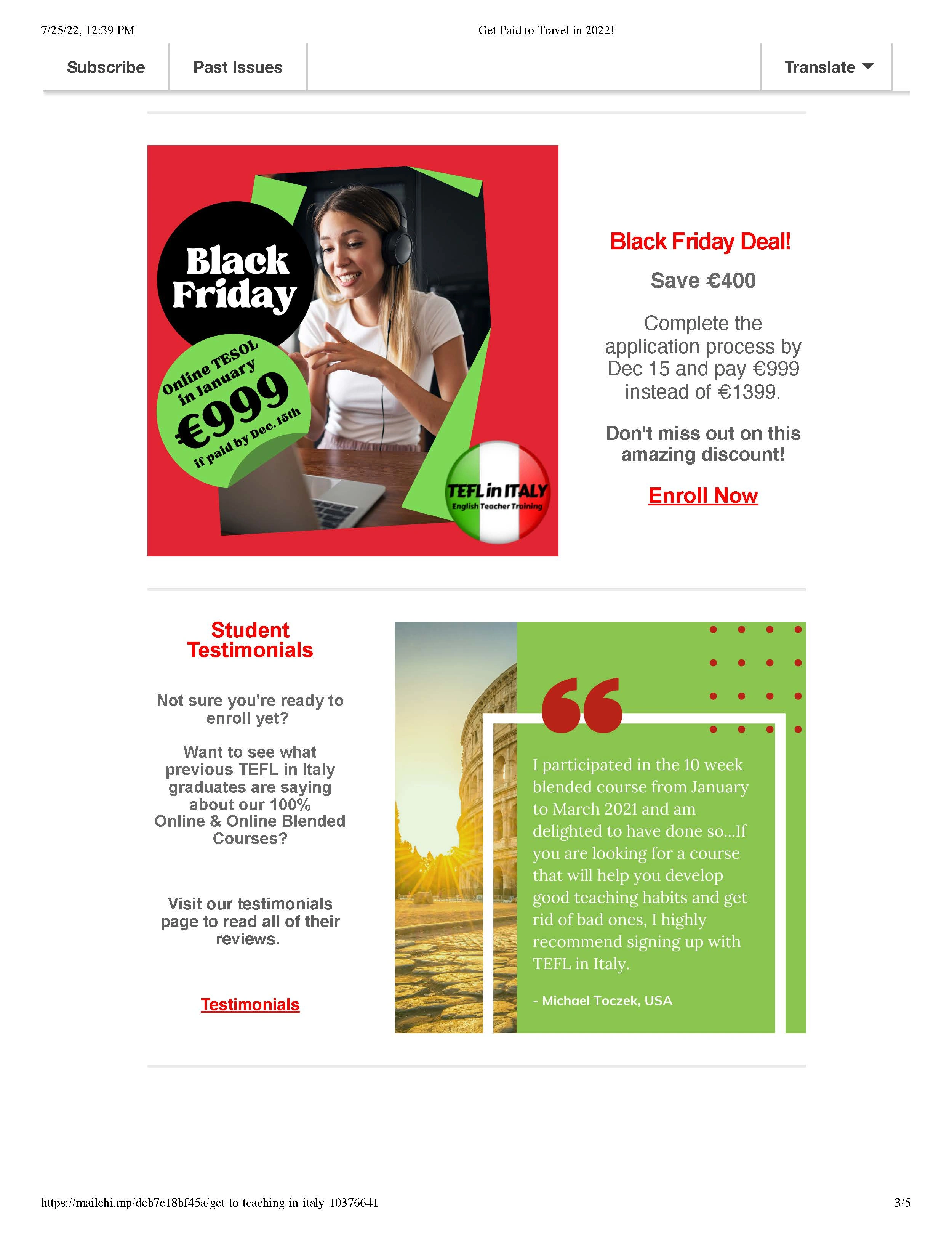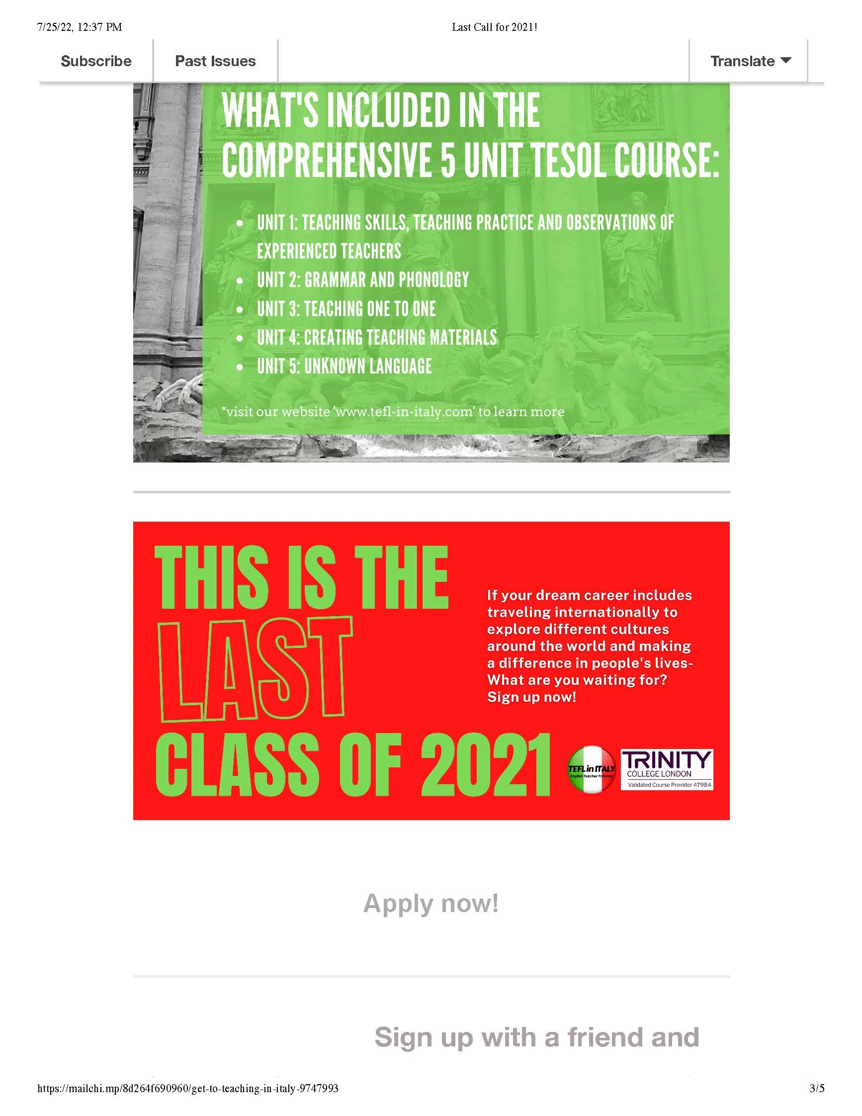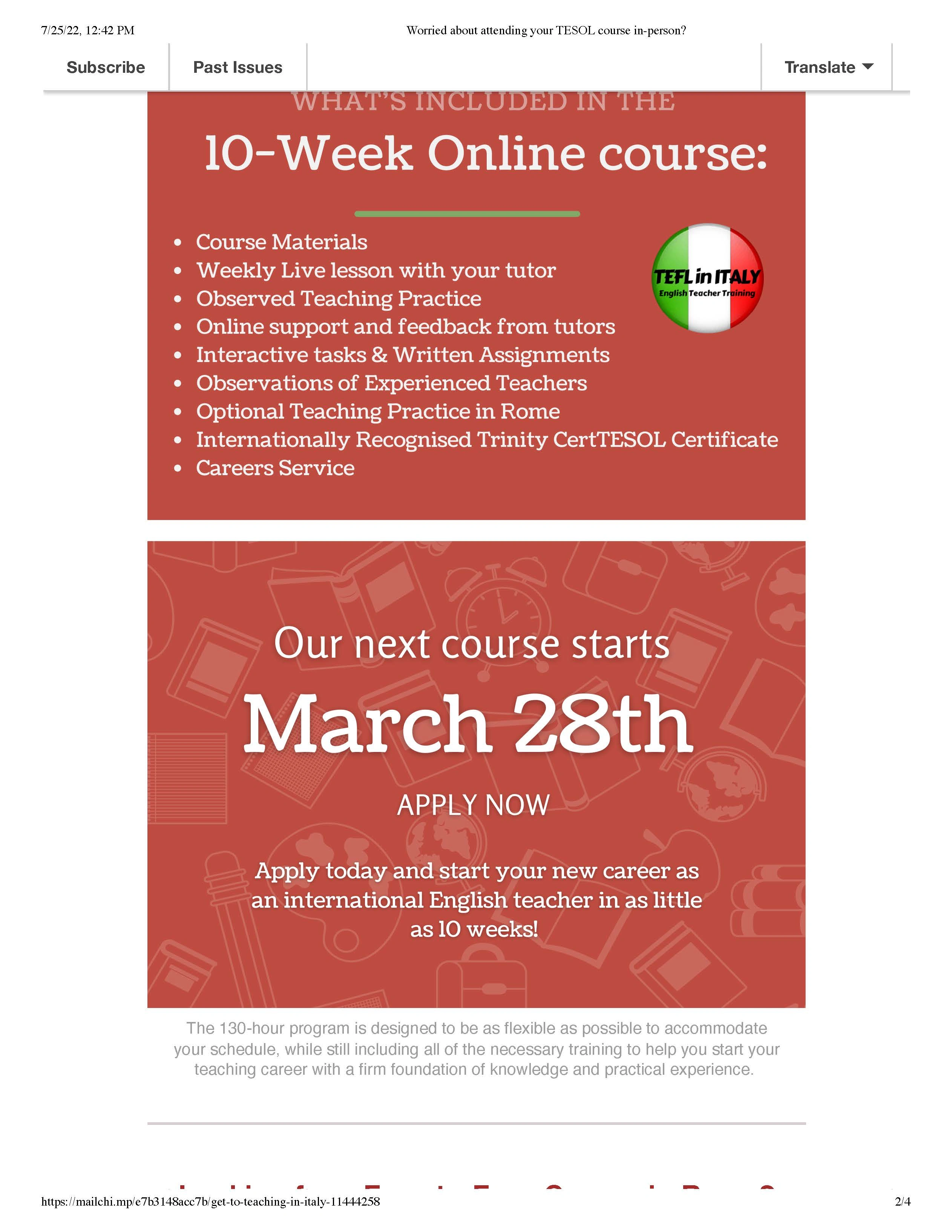 A series of 4 email newsletters written to educate, inform, and sell to TEFL in Italy subscribers.