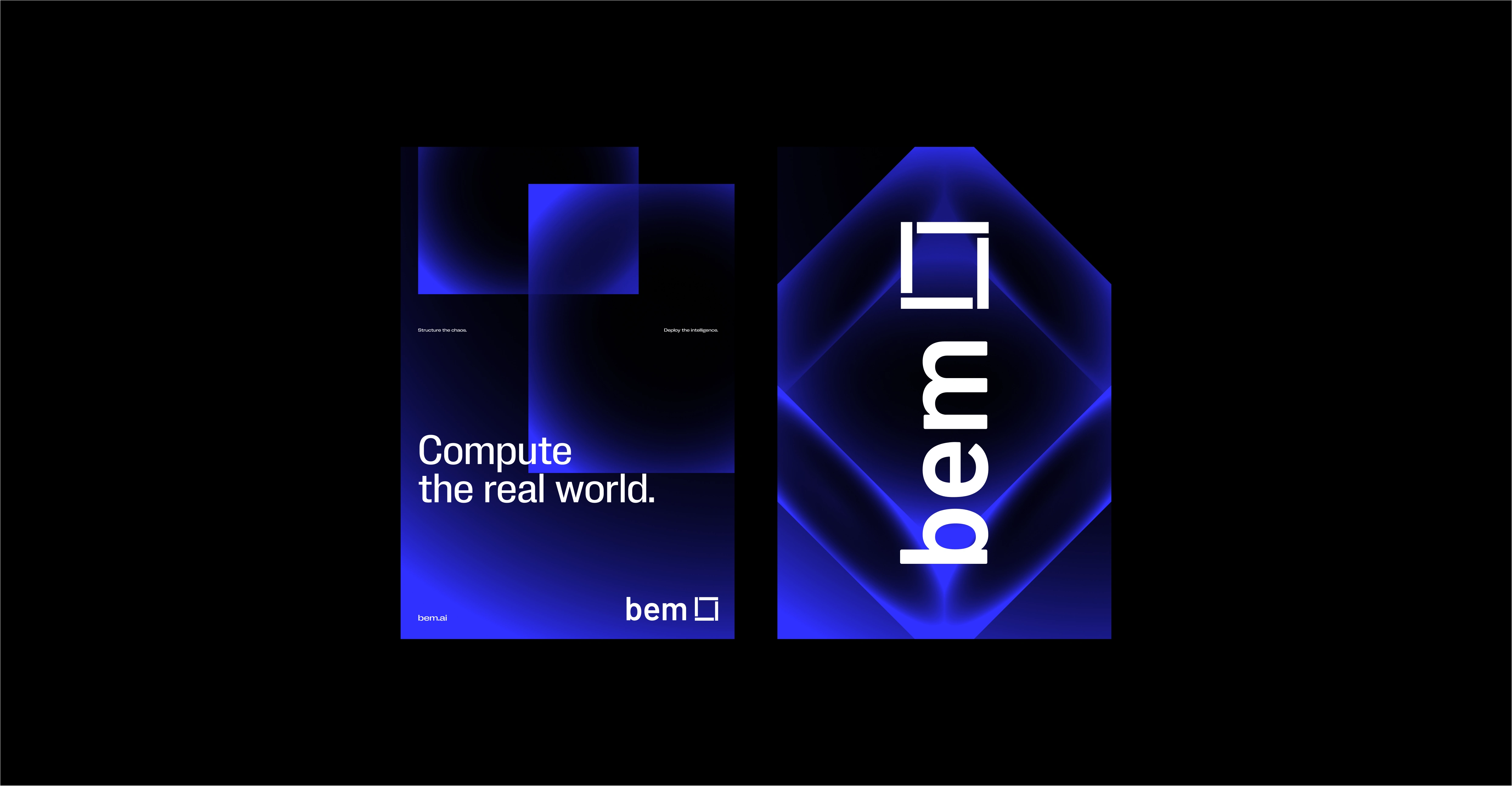 We also developed a modular graphic language using geometric forms and light-based gradients to evoke computation, depth, and intelligence. These elements were designed to be flexible, allowing BEM to create consistent outputs across web, social, and product interfaces without reinventing the wheel each time.