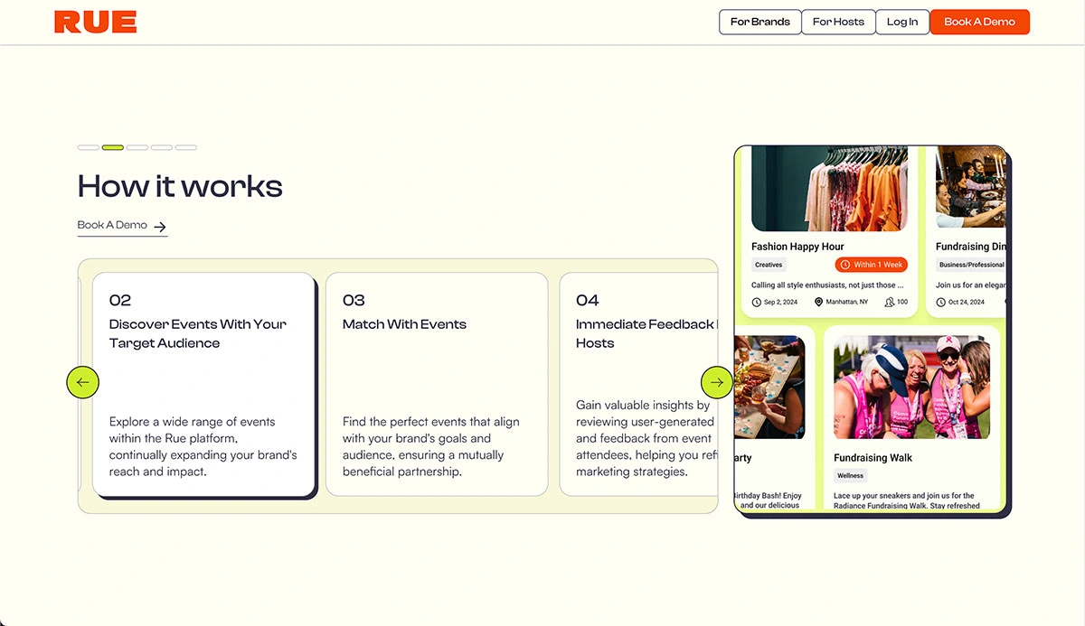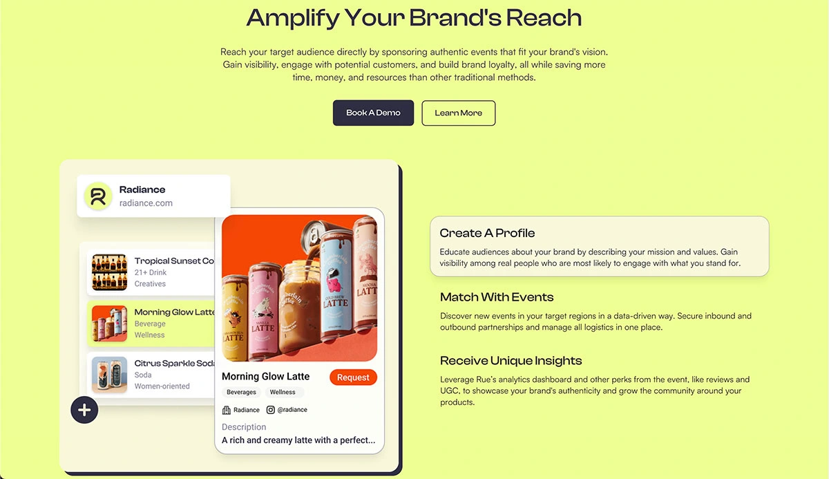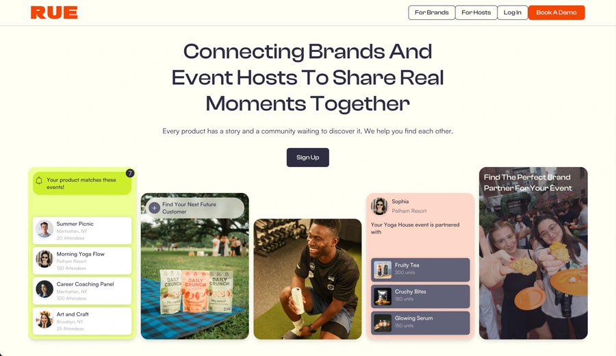 Rue, a tech startup platform, bridges the gap between brands and event hosts, enabling them to find and collaborate with each other seamlessly. When Rue approached nio rio, they needed a solution urgently and expected the project to be completed as soon as possible. After evaluating their needs, we estimated a 2-week timeline to deliver a fully functional 3-page landing page website.