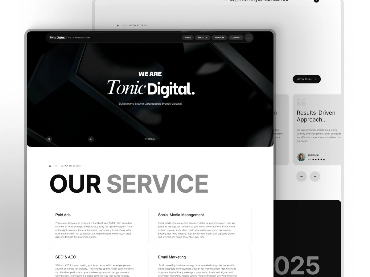 So we built Tonic Digital to do things differently. We intergrate as partners into your team to offer a full-service digital agency that connects strategy, creativity, and performance into one clear direction. We create data-driven marketing systems that generate leads, boost conversions, and grow your business without the chaos of multiple agencies, under one roof.