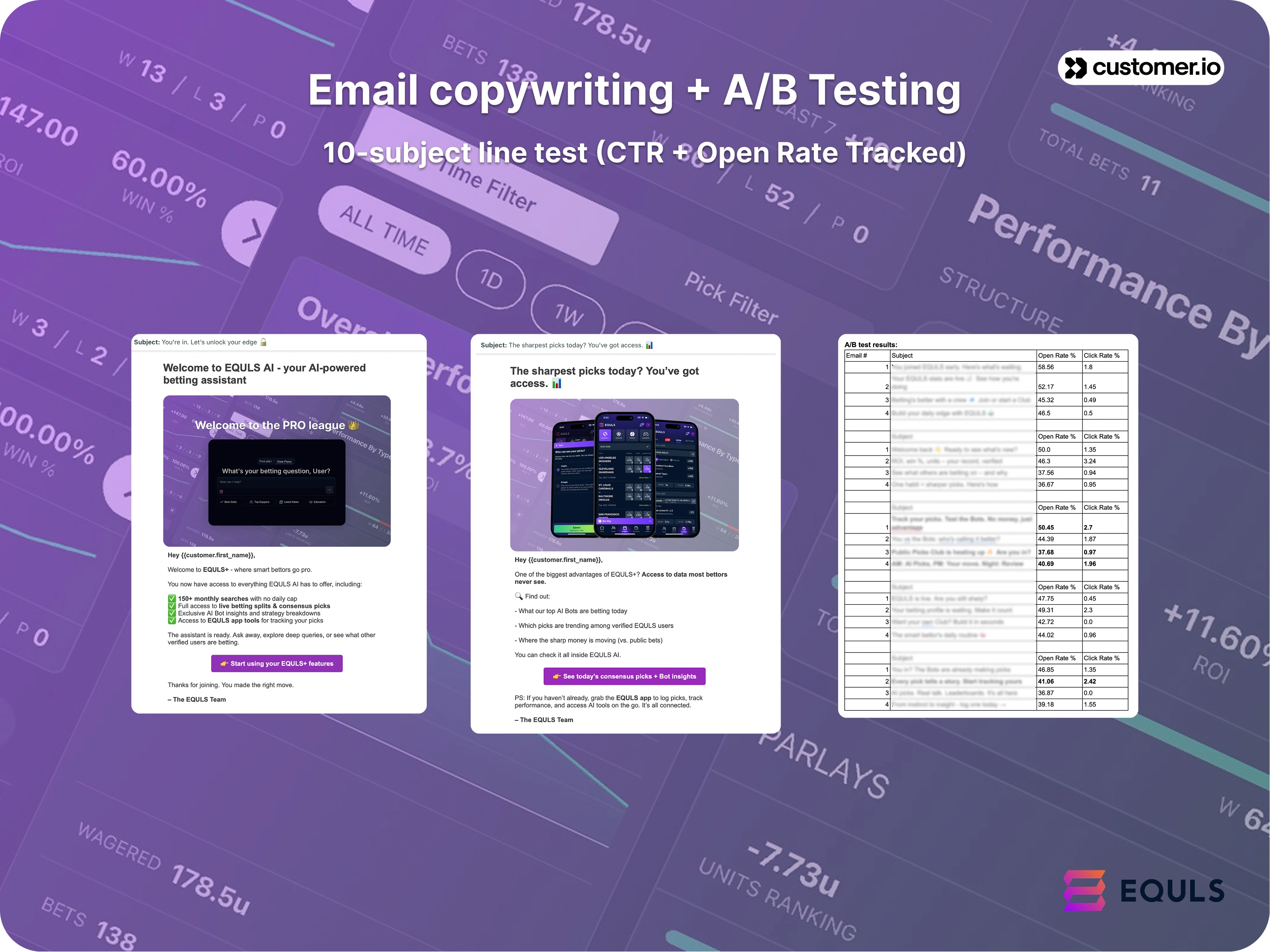 Client: EQULS Industry: Sports Betting / AI / Consumer App Location: US (HQ in Austin, Texas) Stage: Pre-Seed, Pre-Traction Core Product: AI-powered betting assistant with community engagement, personal stat tracking, and expert/bot pick transparency Project Type: Fractional Head of Growth / Lifecycle Marketing