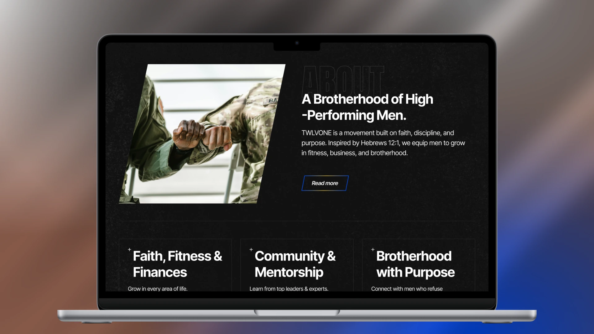 TWLVONE is a bold and purpose-driven movement dedicated to faith, discipline, and brotherhood. The website needed to match this energy by presenting a strong digital identity that felt modern, inspiring, and unapologetically bold.