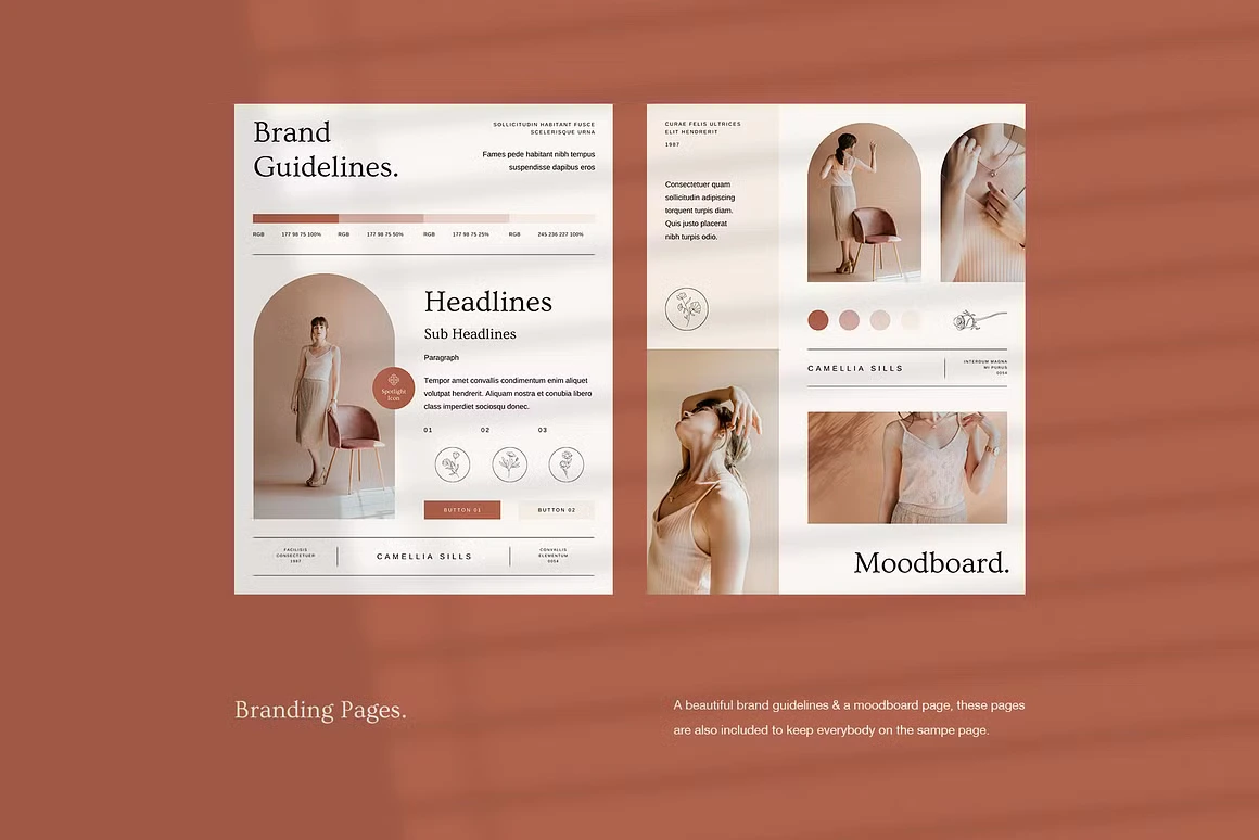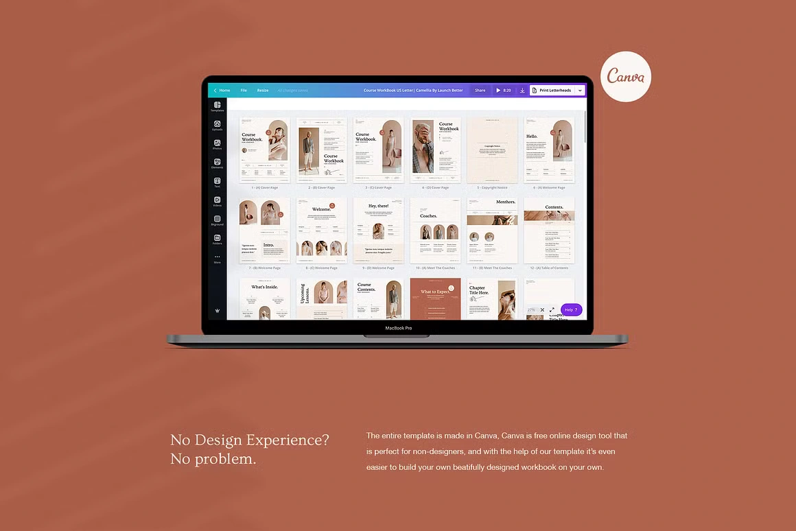 Camellia is a 100-page Canva course workbook for coaches who want their materials to feel as premium as their offer. Inspired by the warmth and elegance of Havana, the design blends minimal structure with luxurious warmth, terracotta reds, soft creams, and dusty nudes paired with refined serif typography and delicate botanical icons.