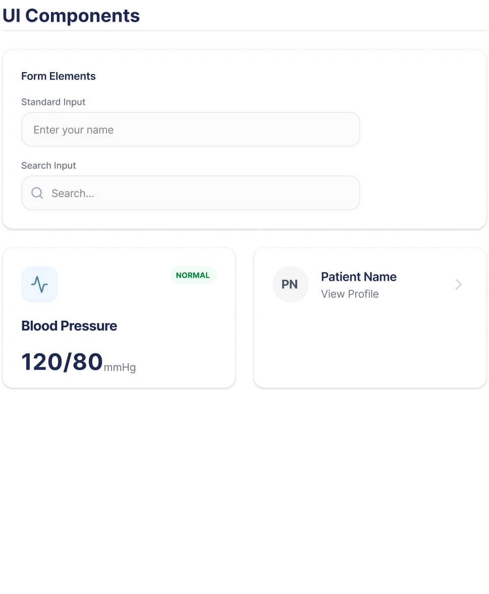 Typography: A clear, mobile-optimized typography scale was implemented, ensuring the Display Heading and Dashboard Overview headers were legible at a glance, vital for quick decision-making by medical staff.