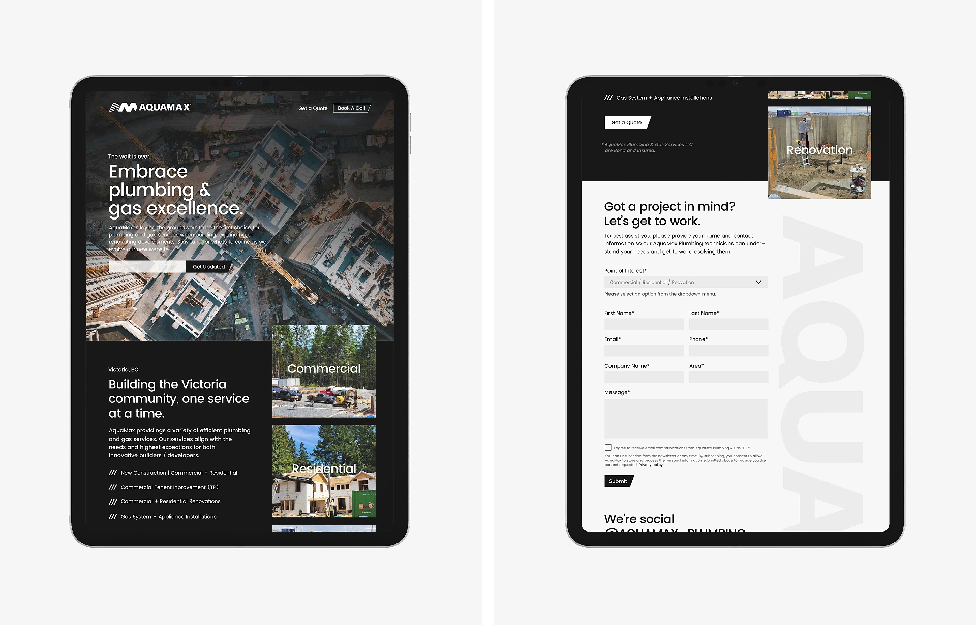 Aquamax Plumbing and Gas, based in Victoria, Canada, specializes in providing efficient plumbing and gas services to the community. Serving innovative builders, developers, and residential and commercial clients, Aquamax offers services such as new construction, tenant improvement, renovations, and gas system installations. Our task was to redesign the brand’s identity and visual assets to create a unique and appealing look that resonates with a broader audience.