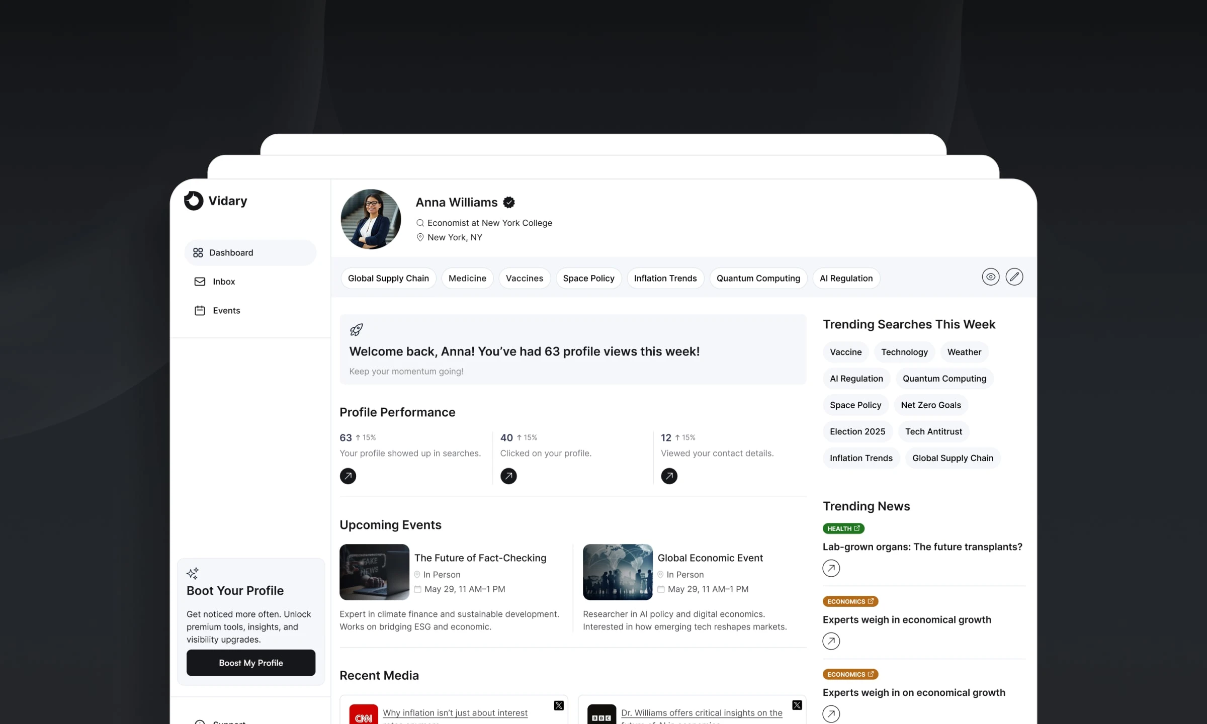 Vidary needed to become more than a directory, it had to function as a credible, intelligent network for expert discovery.