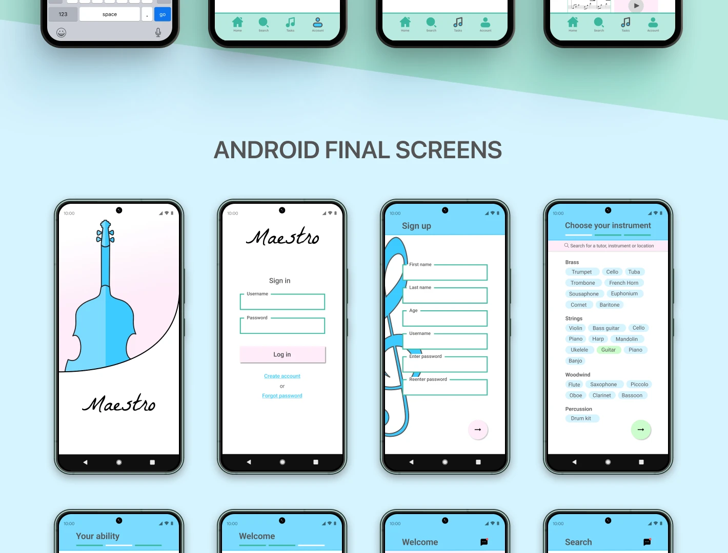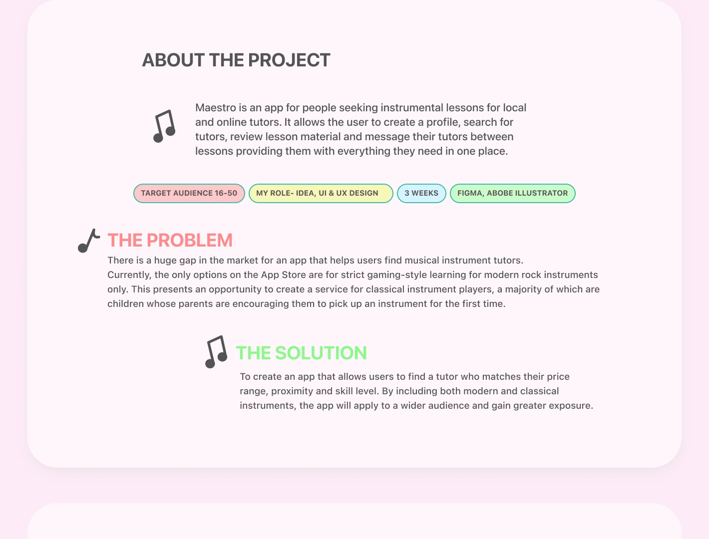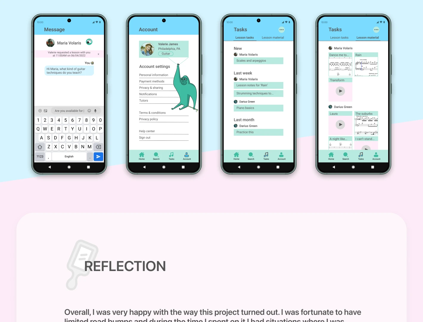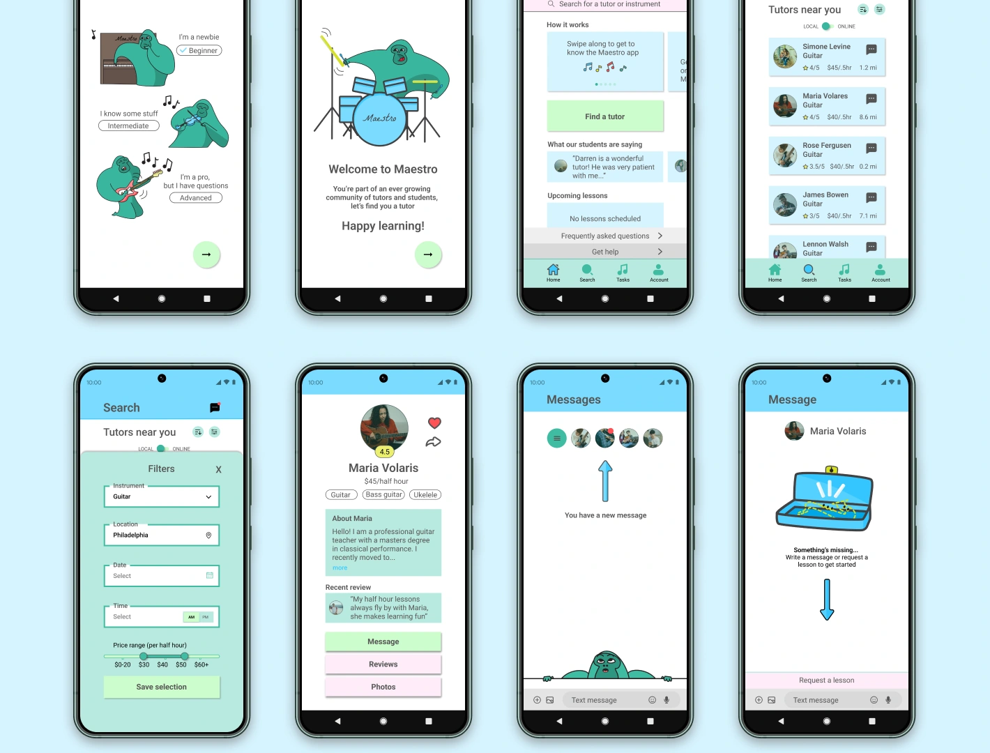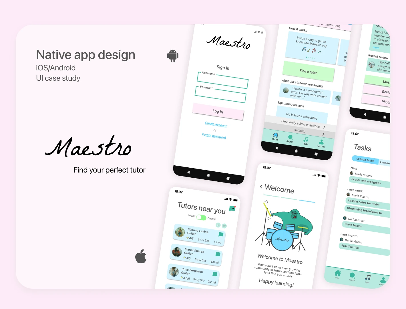 Music tutoring app for both Android and iOS mobile devices. Showcasing intuitive UX and Illustrated graphics.