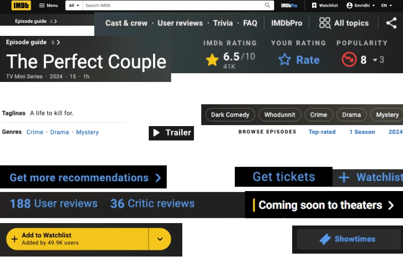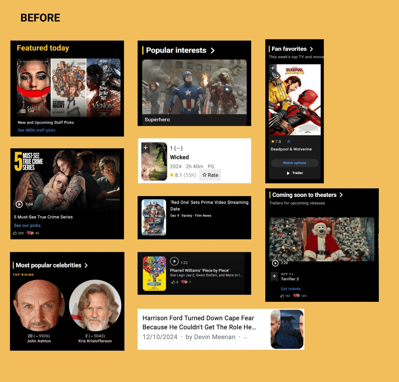 To understand these, I conducted a UI audit of the IMDb website and created a comprehensive UI inventory.