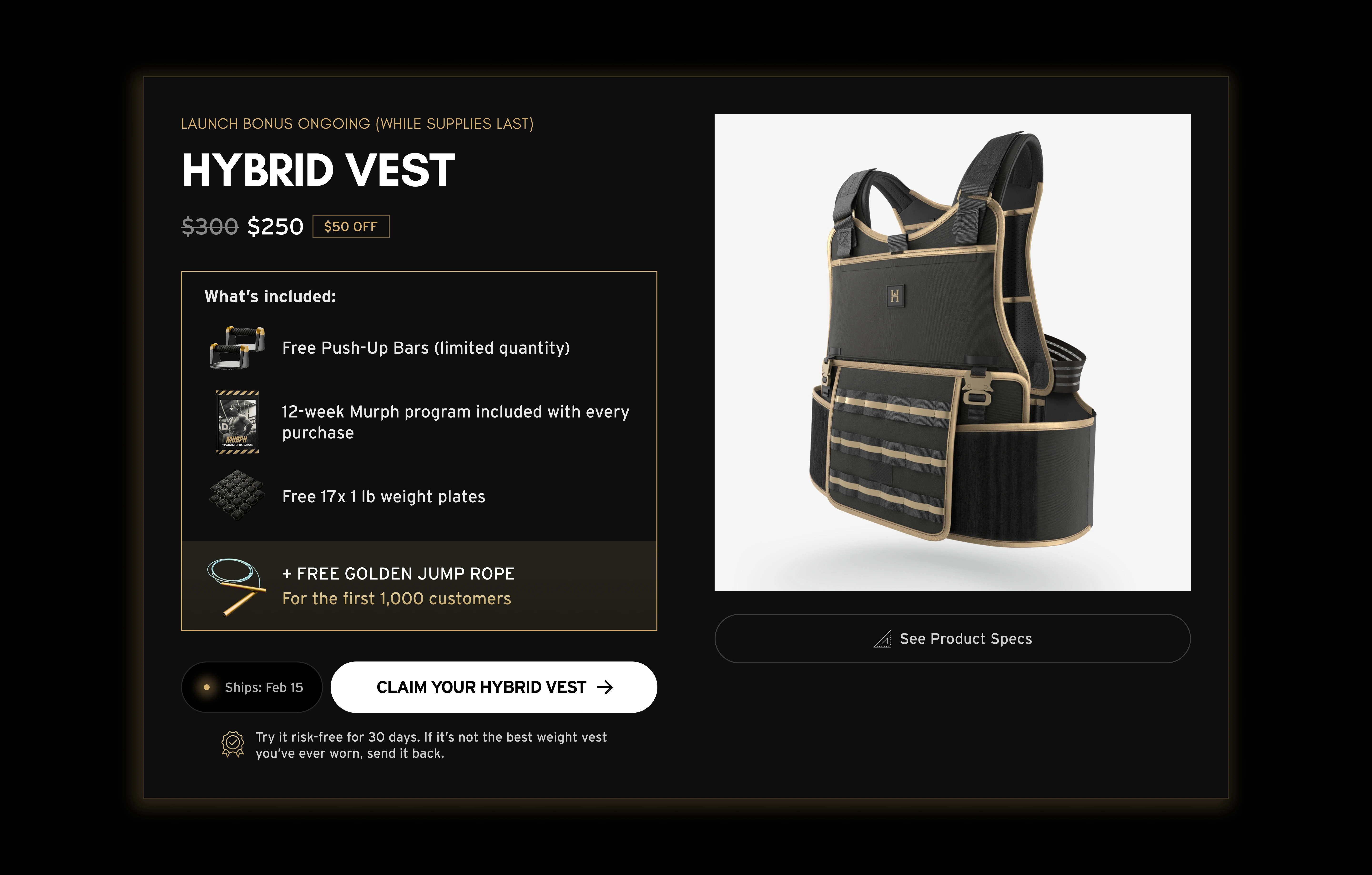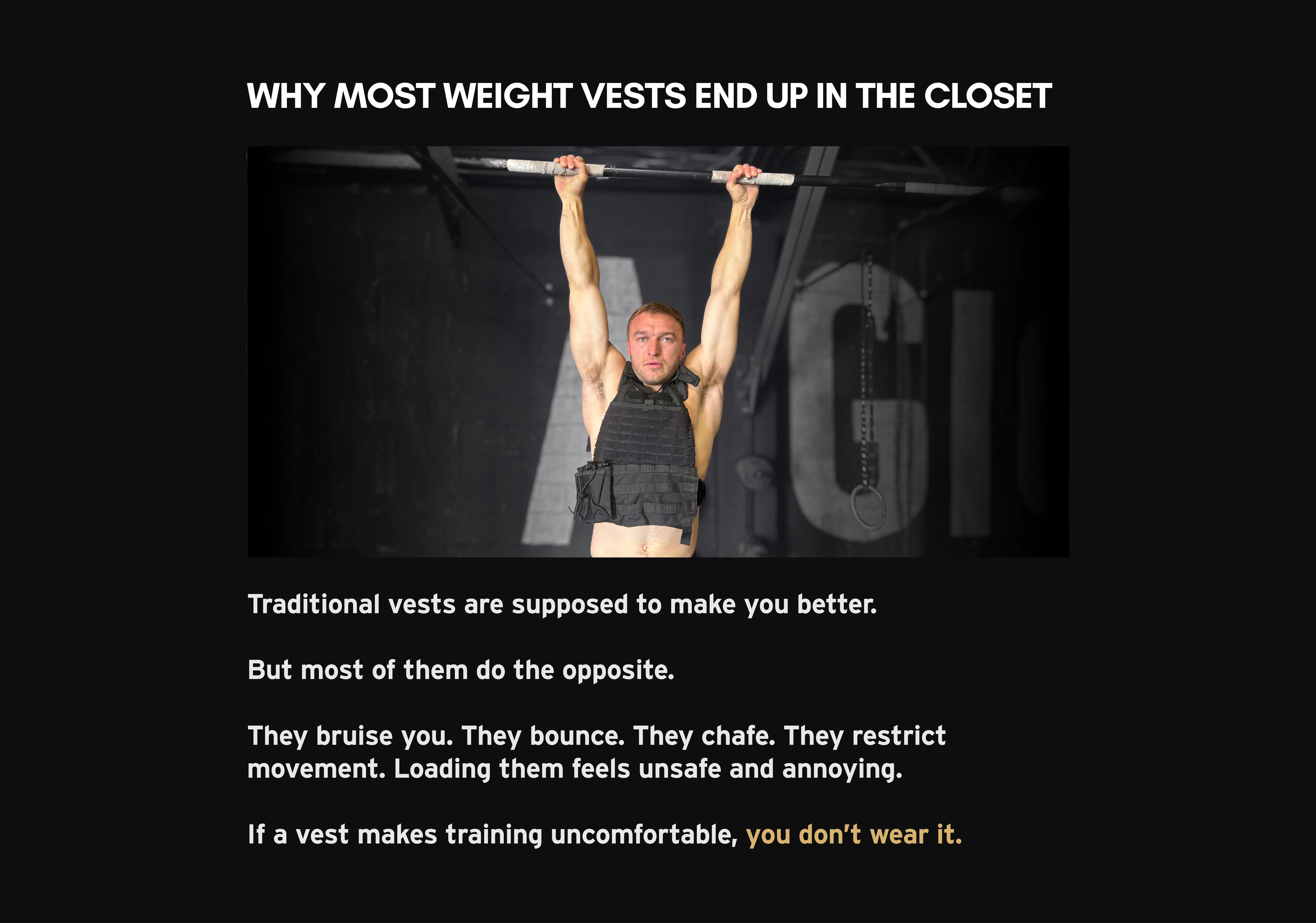 Above the fold, highlighting why this weighted vest is different and the benefits:
