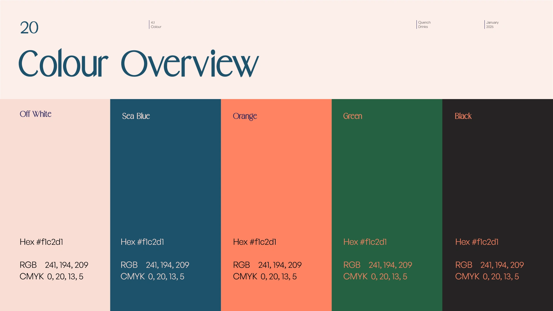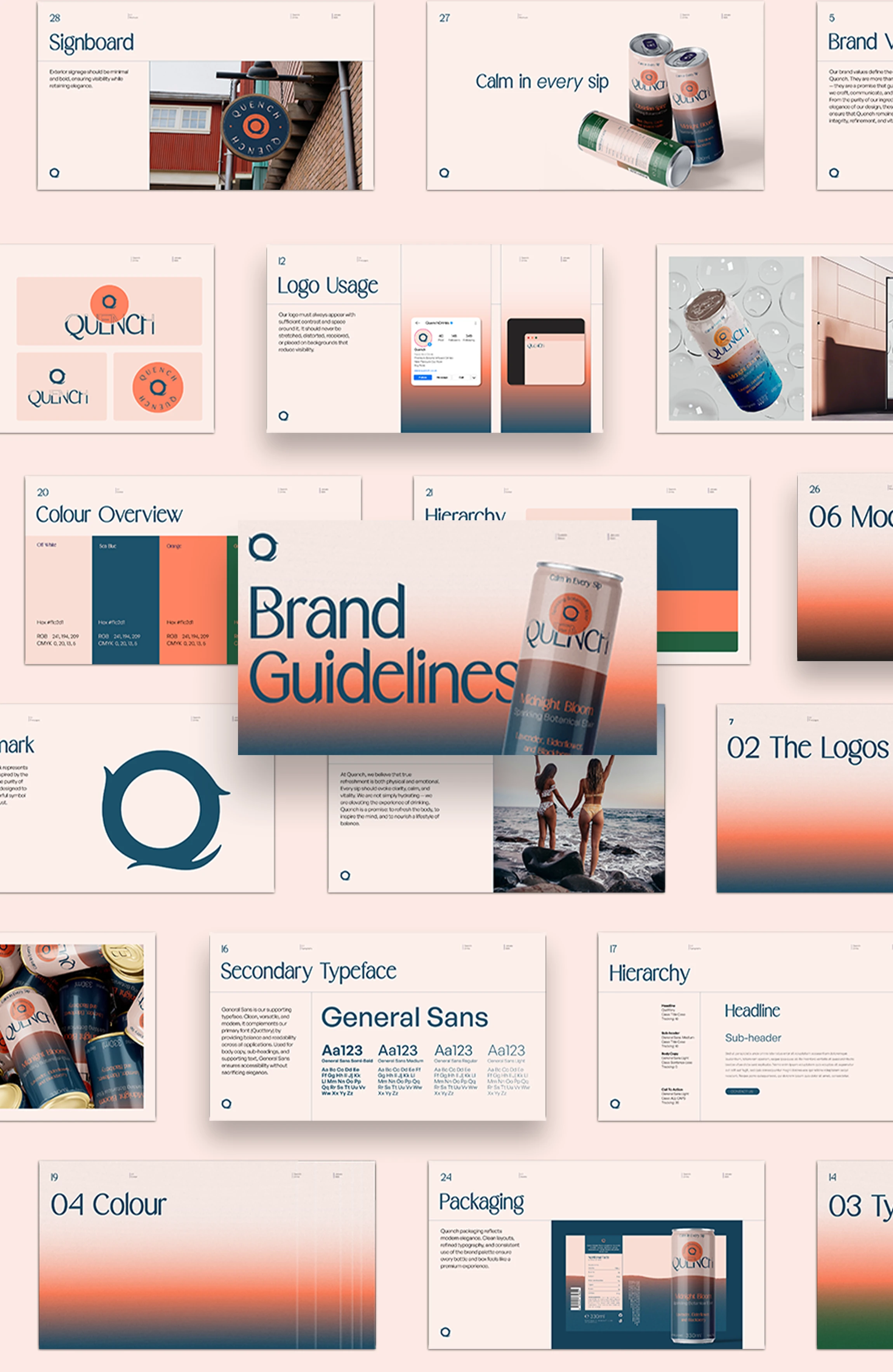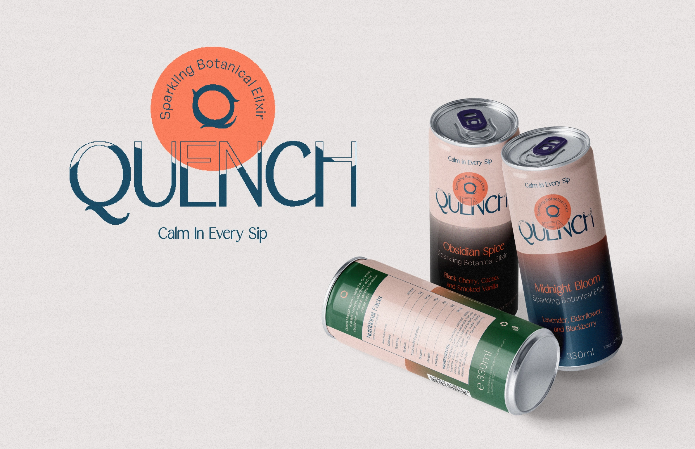 Quench is a passion project where I took on the full scope of brand creation, developing a cohesive visual identity from the ground up. I designed the logo, defined the color palette, typography, and visual language, and compiled everything into a detailed brand book. The goal was to create a modern, refreshing identity that captures the essence of the brand while maintaining versatility across different applications. This project allowed me to explore my creative process in depth - from concept development to polished execution - and showcase my ability to build a complete, strategic brand system.