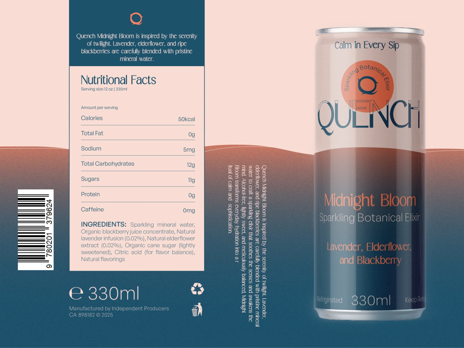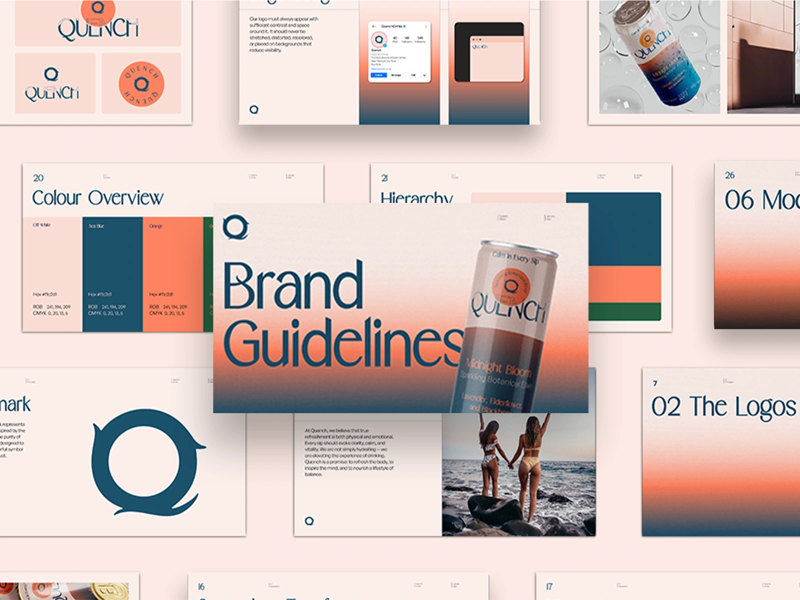 Quench is a passion project where I took on the full scope of brand creation, developing a cohesive visual identity from the ground up. I designed the logo, defined the color palette, typography, and visual language, and compiled everything into a detailed brand book. The goal was to create a modern, refreshing identity that captures the essence of the brand while maintaining versatility across different applications. This project allowed me to explore my creative process in depth - from concept development to polished execution - and showcase my ability to build a complete, strategic brand system.