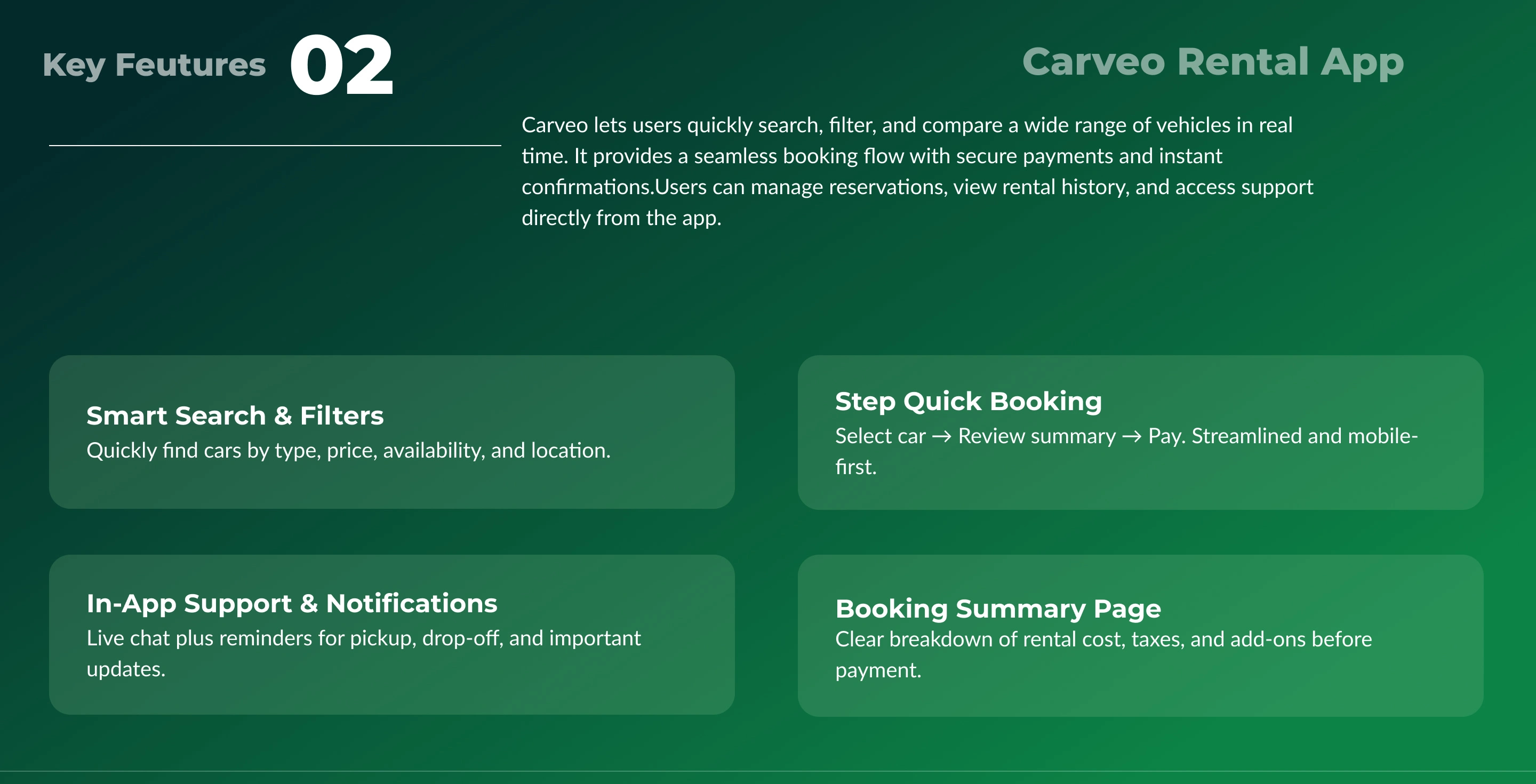 Carveo is a car rental app that simplifies the way users search, compare, and book vehicles