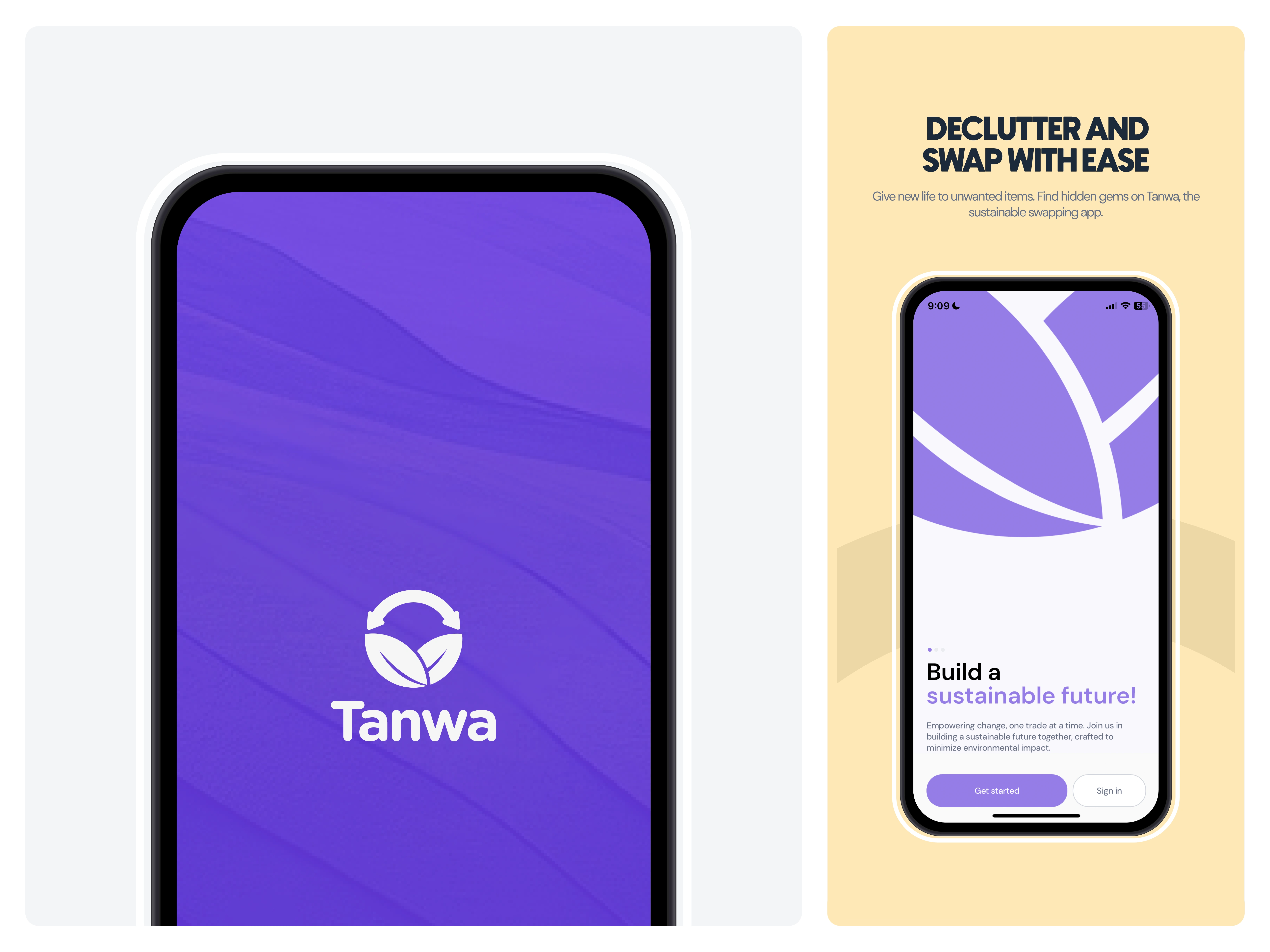 Tanwa is a mobile barter and exchange app built around “swipe, match, swap.” It enables users to trade pre-loved items through a Tinder-style discovery system, promoting sustainable consumption and reducing waste. I led the full mobile UX design and shaped the brand direction, ensuring the experience felt social, trustworthy, and eco-friendly.