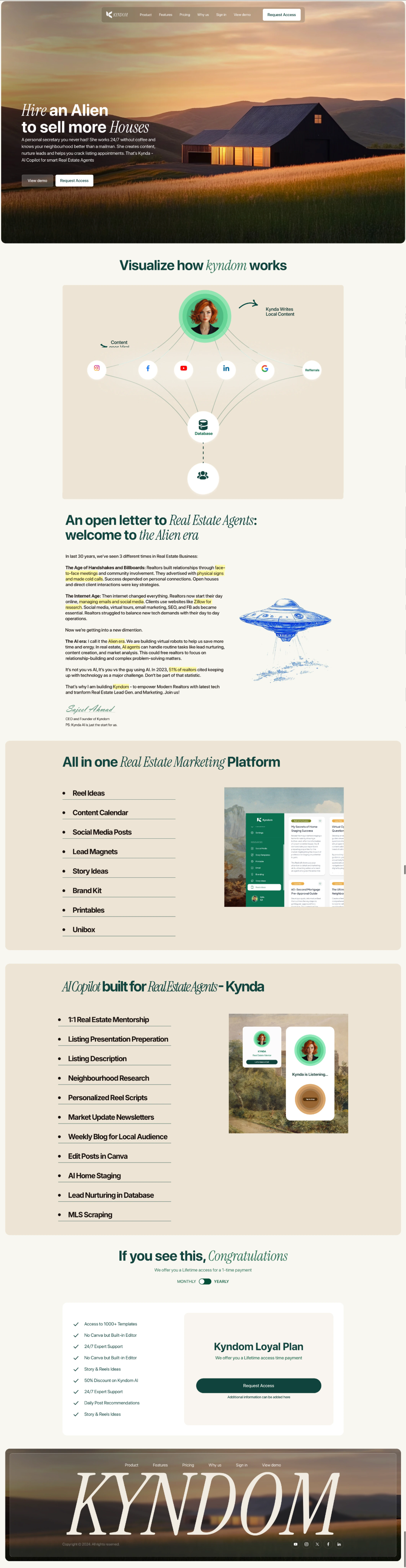 The Kyndom landing page project focused on delivering a clean, professional design that showcased Kynda’s strengths in helping real estate agents. From custom a
