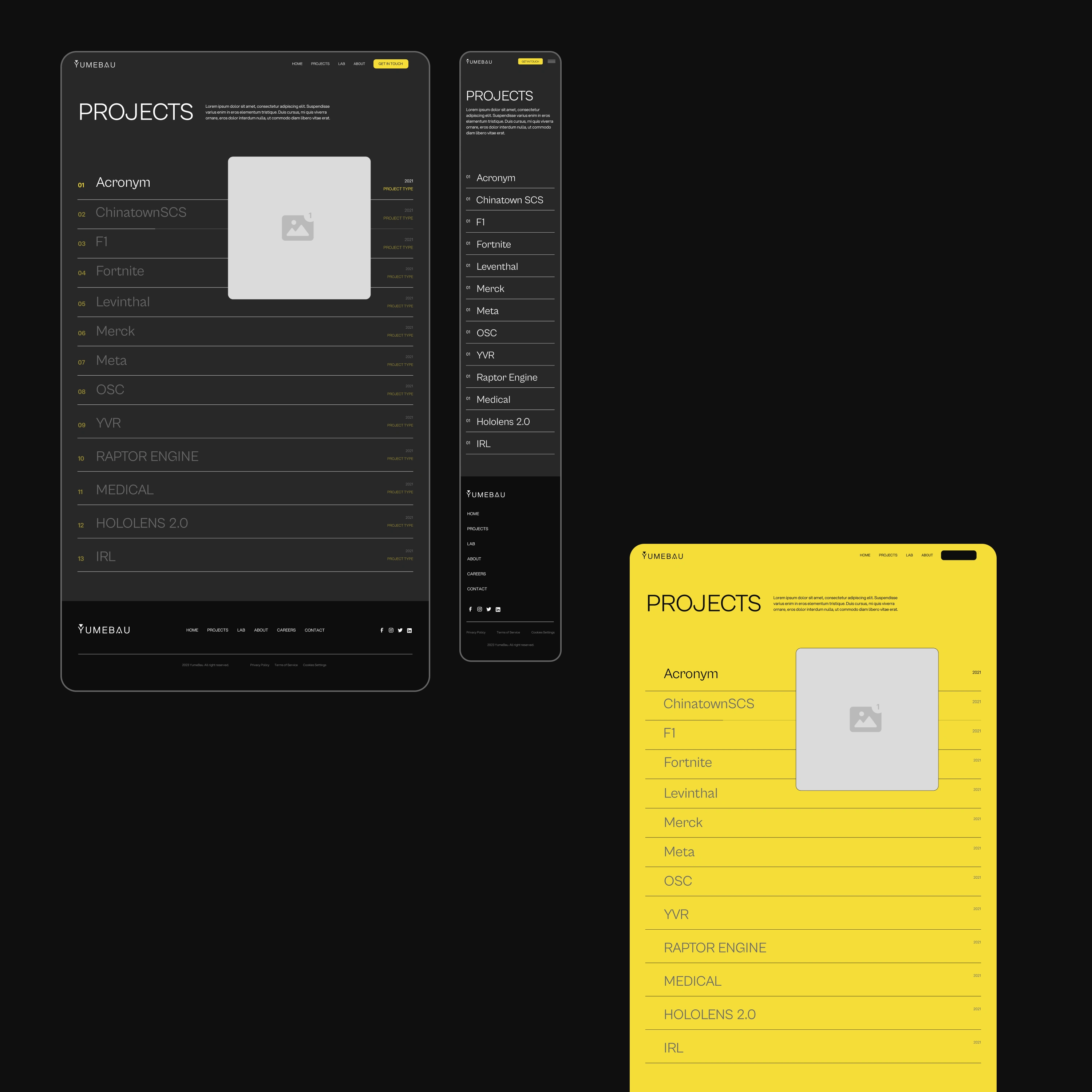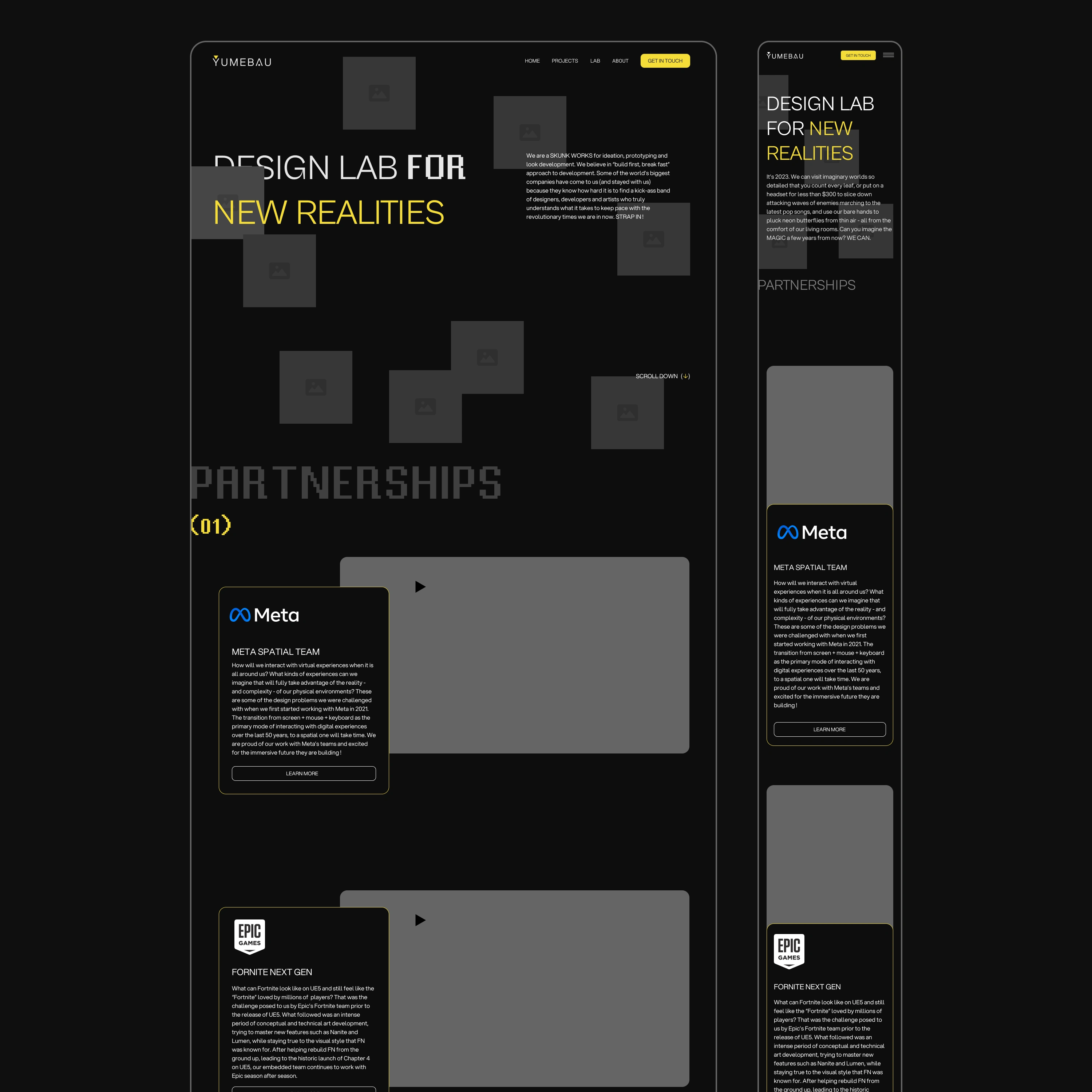 YumeBau is a remote-first game studio with partnerships with Meta and Epic Games. I was contracted to refresh their visual identity and design and develop their new website, to house their project showcases and also inform their audiences about the company and its endeavours.
