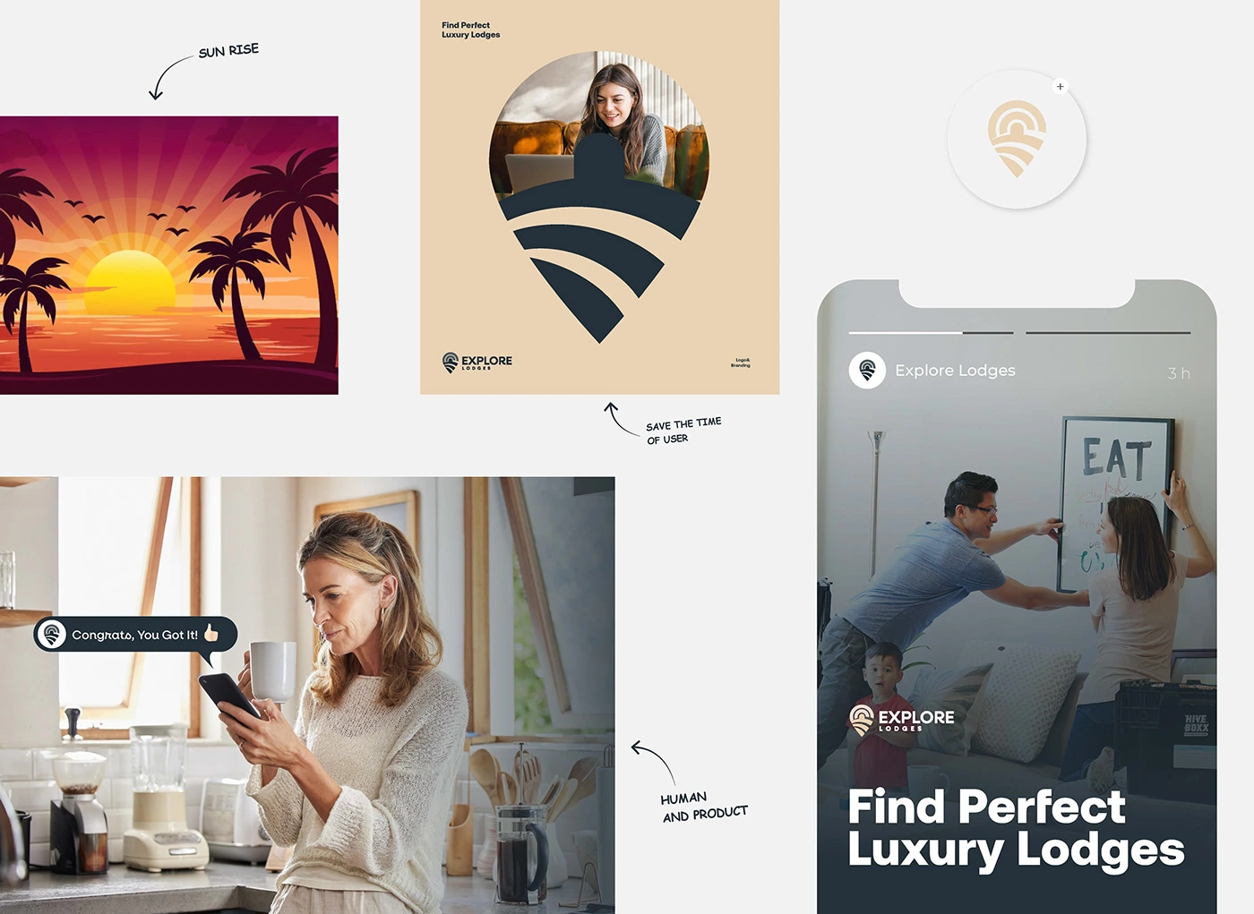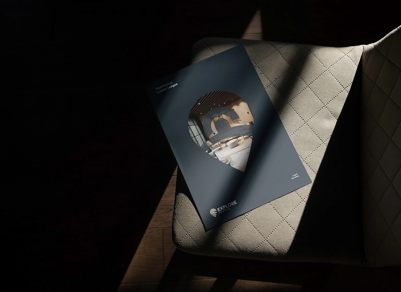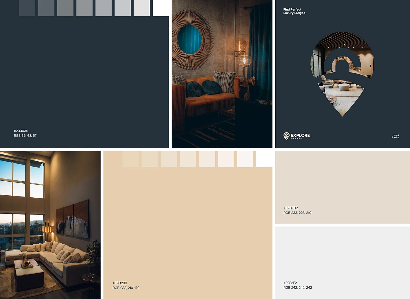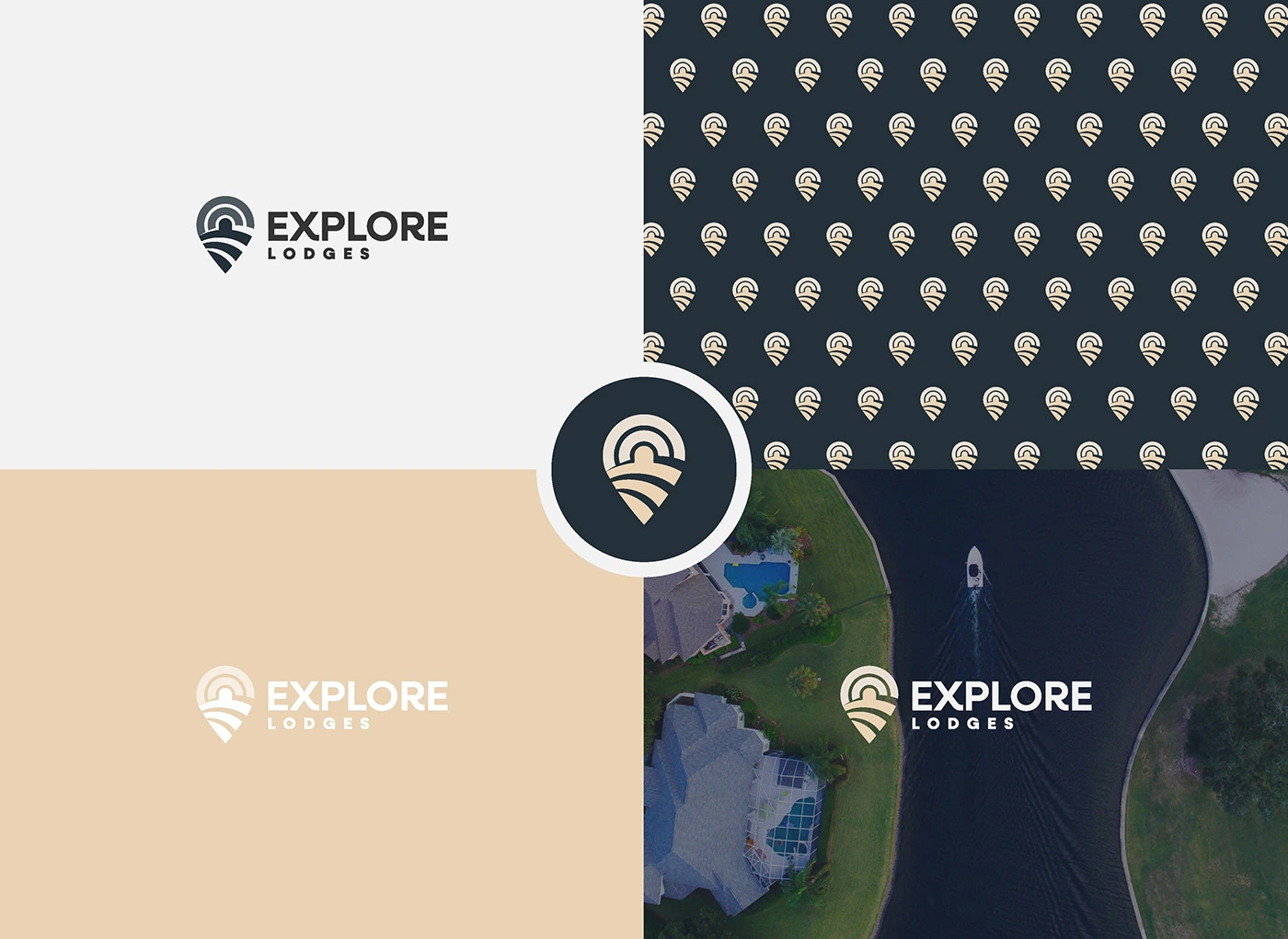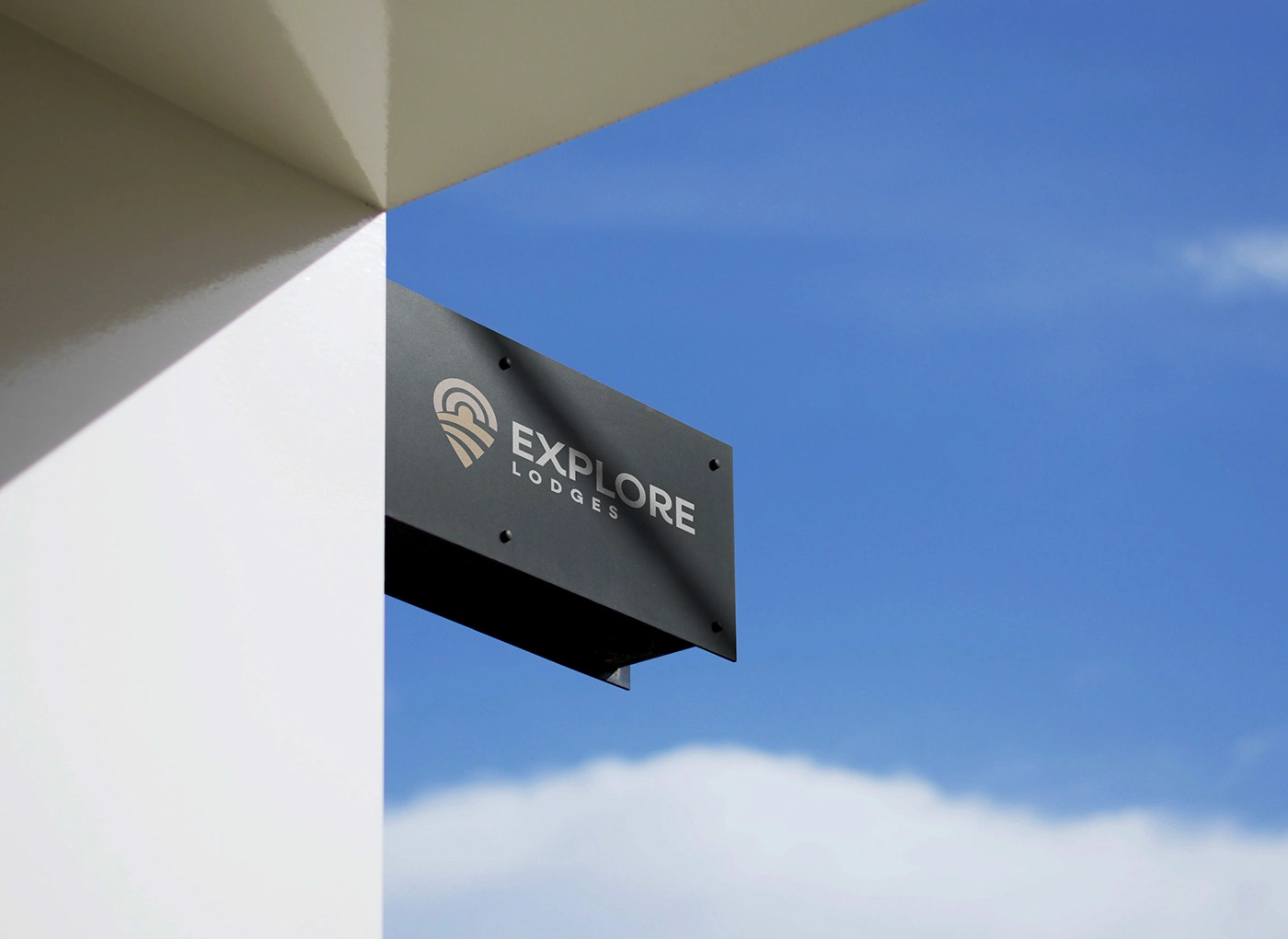 Explore Lodges brand identity blends rustic charm with modern design—featuring earthy tones, elegant typography, and a nature-inspired visual style.