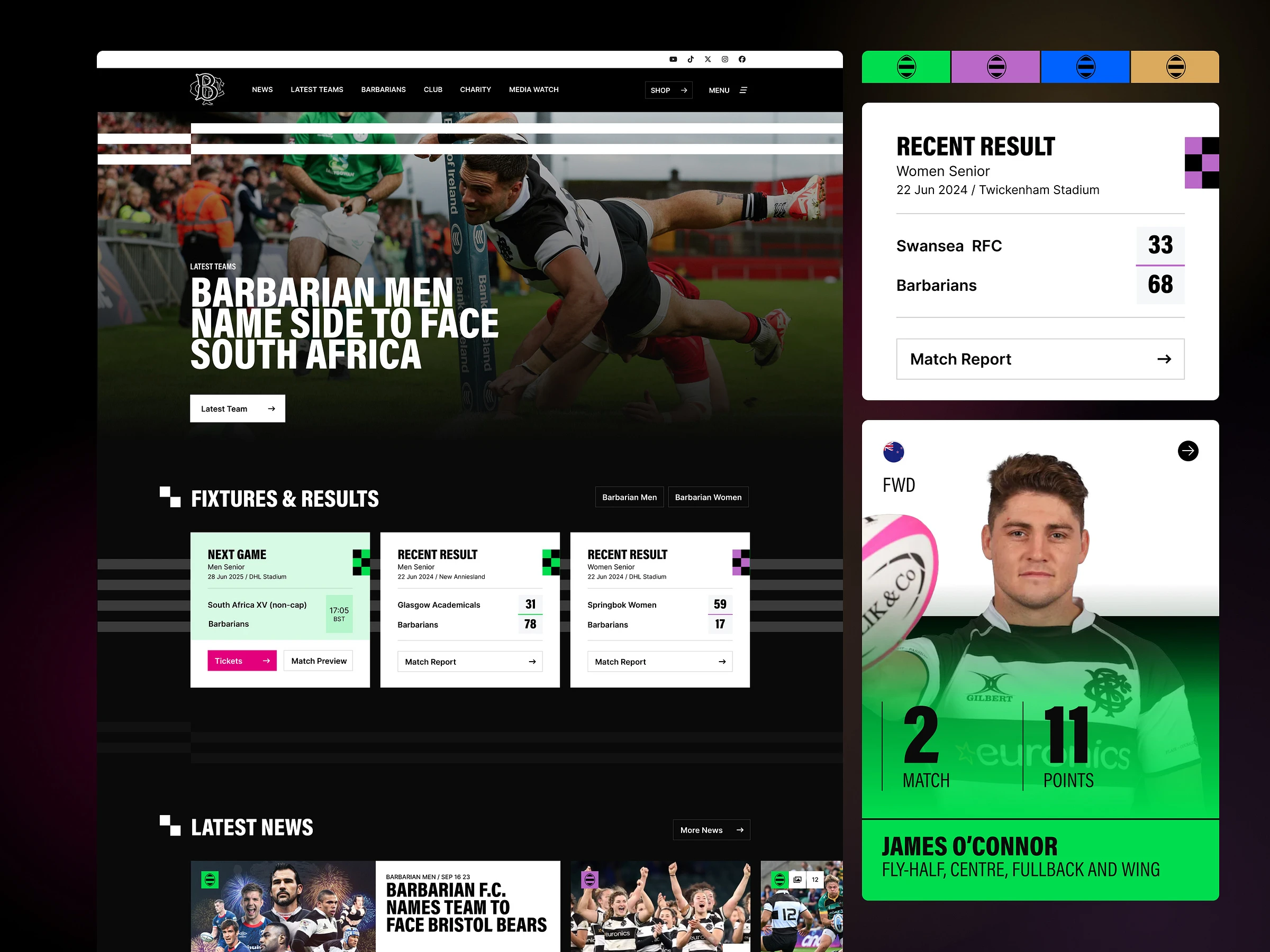 We delivered a complete digital rebrand and website overhaul for a prominent sports organisation. The project's core was a refreshed WordPress website, meticulously aligned with a new brand direction. This included a searchable player and fixture archive, significantly enhancing the user experience.
