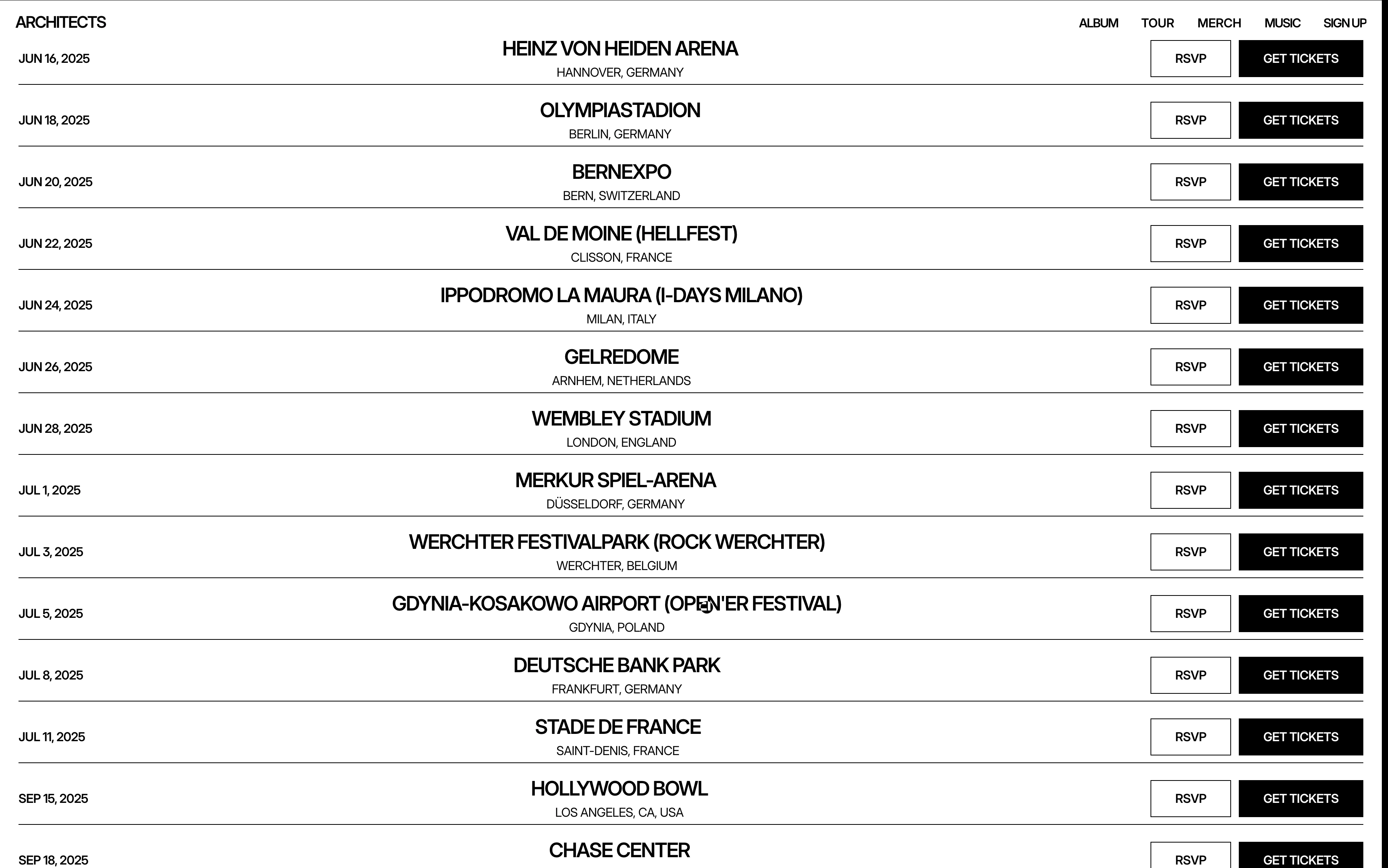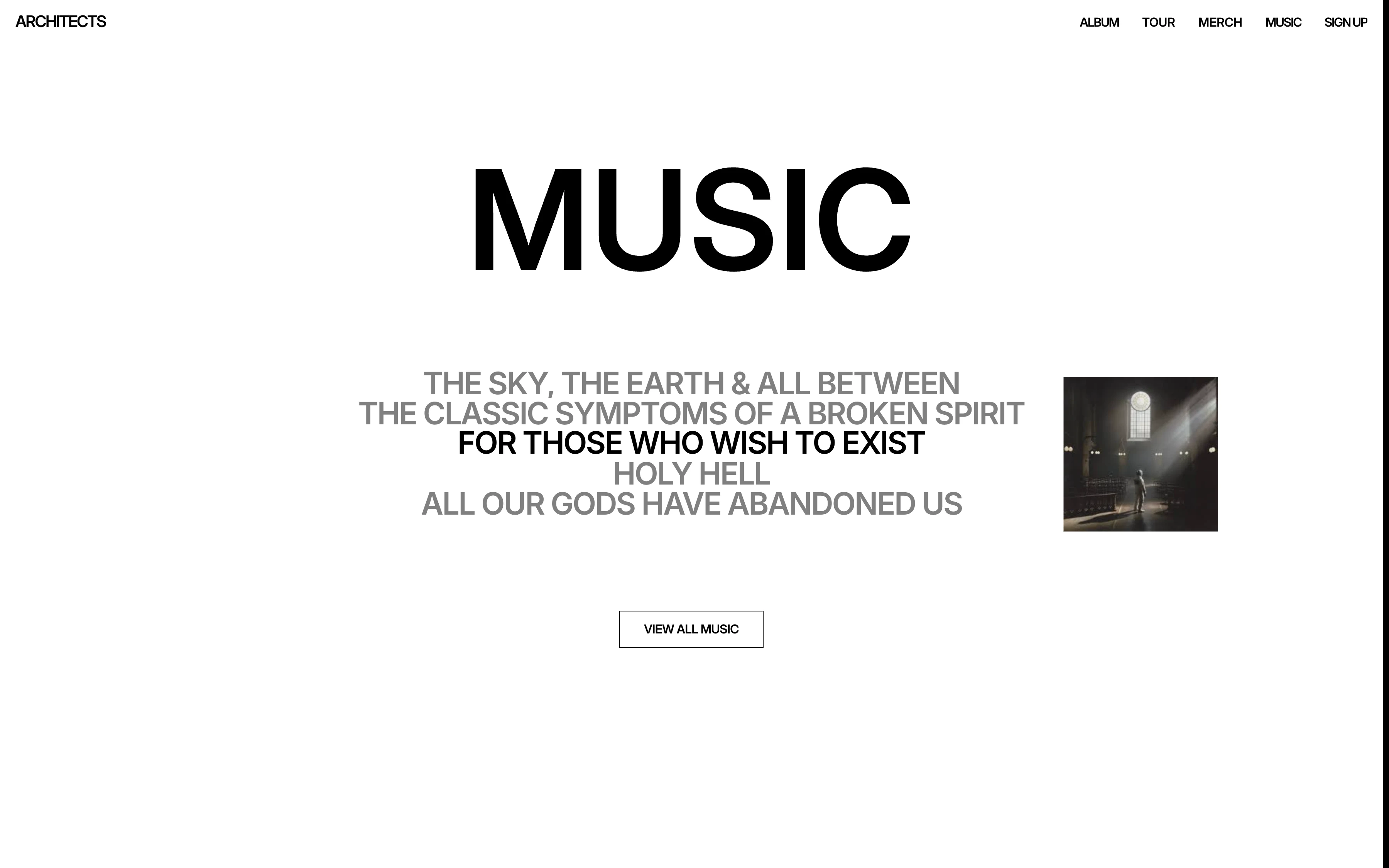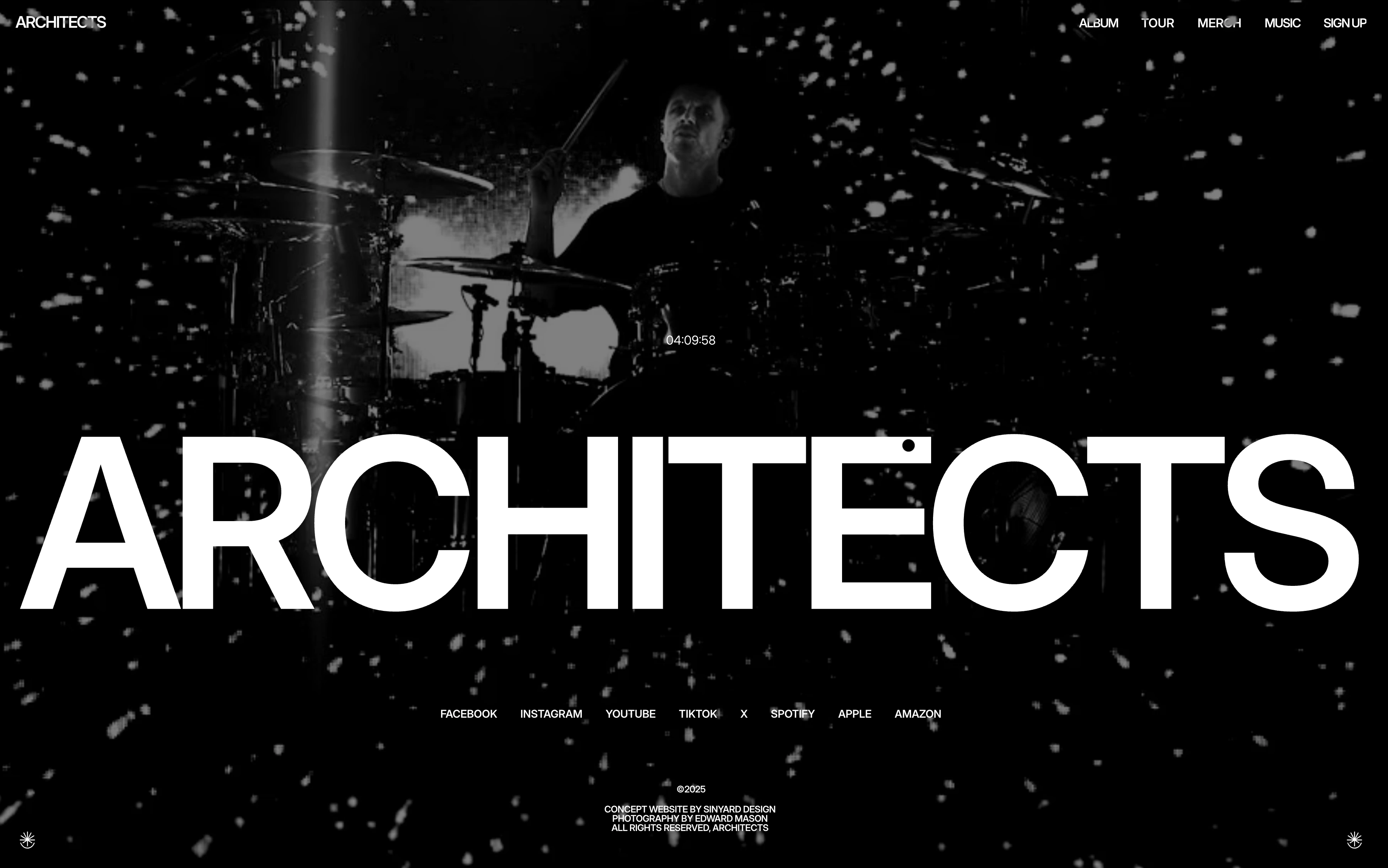 Architects' existing website, while functional, lacked the immersive quality that could truly capture their powerful musical identity. The site felt static and didn't fully engage visitors or encourage exploration beyond basic information. There was an opportunity to transform the standard band website formula into something more experiential.