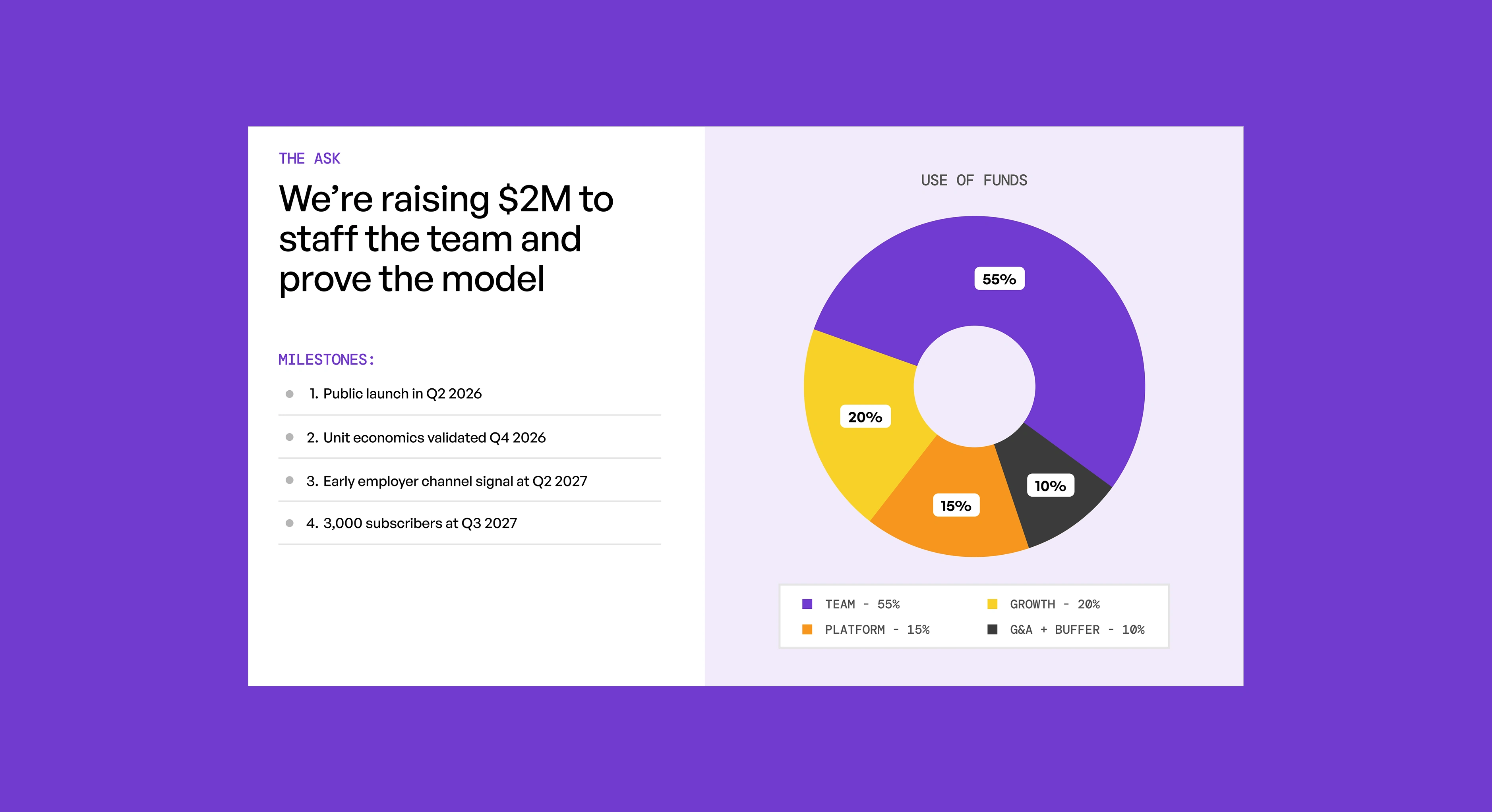 Goal: Keep it clean and readable, with a modern, premium feel suitable for a pitch