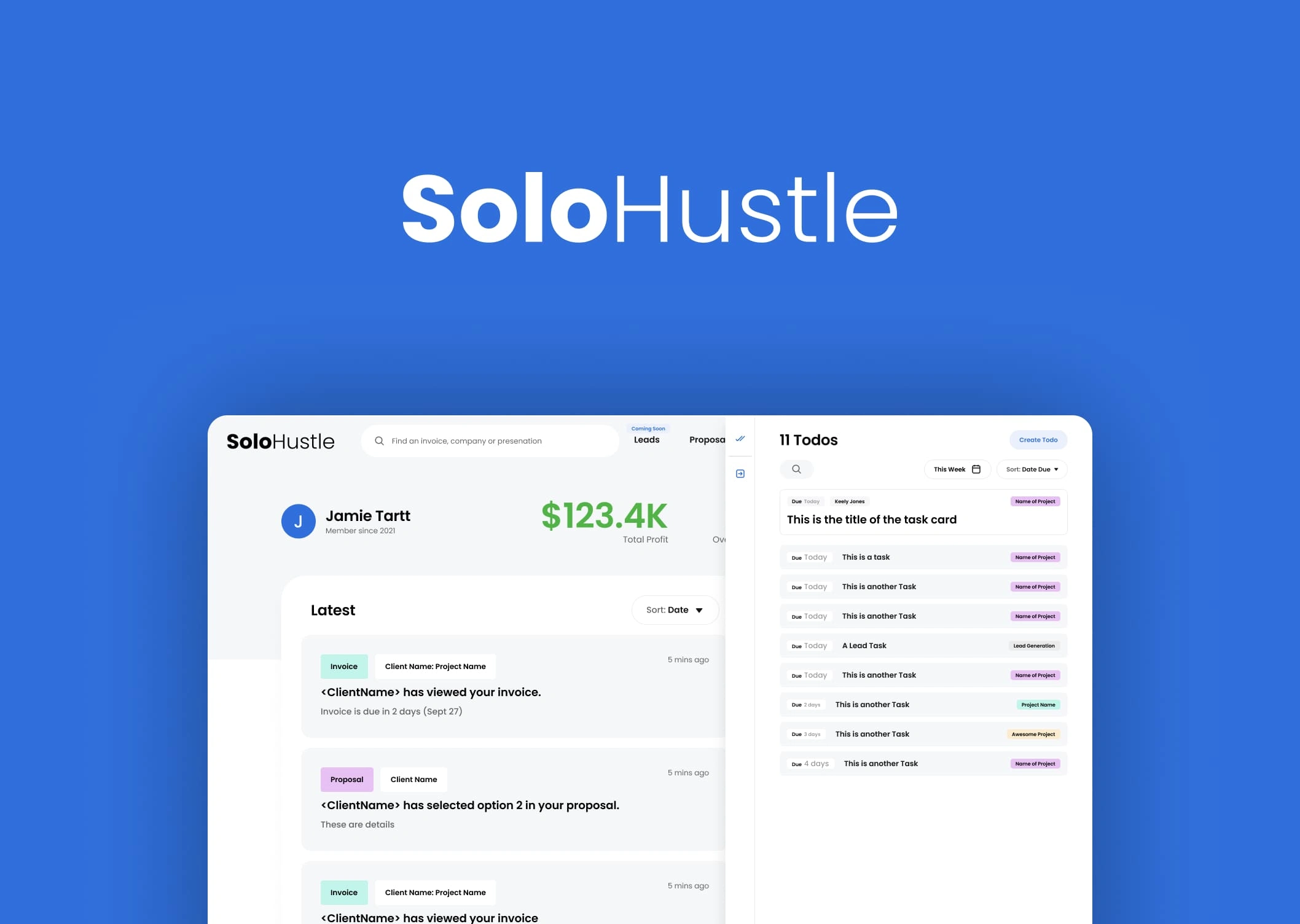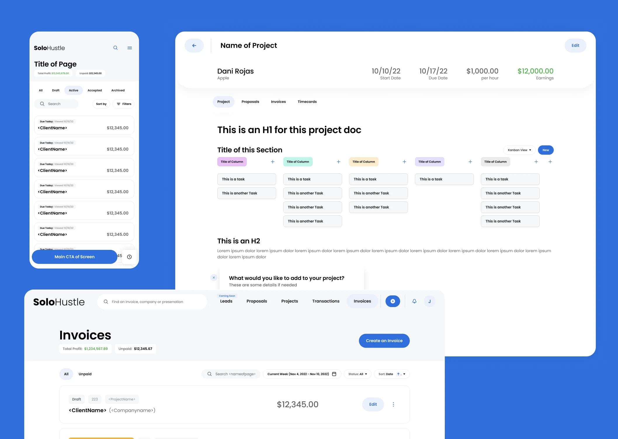 Worked withe the Archlogix team to create SoloHustle from scratch. Created a design system as well as a complete responsive SAAS product for business owners.