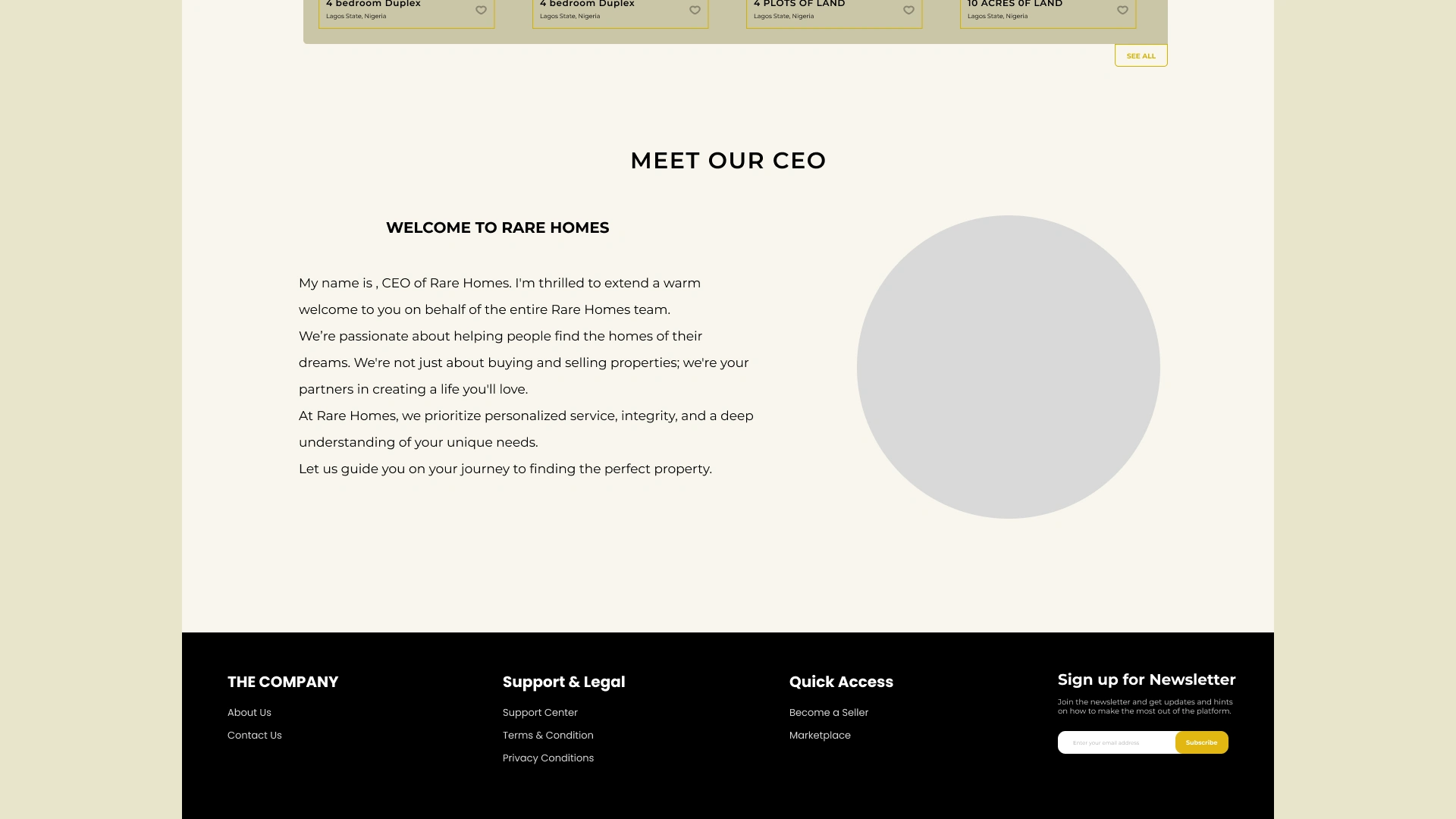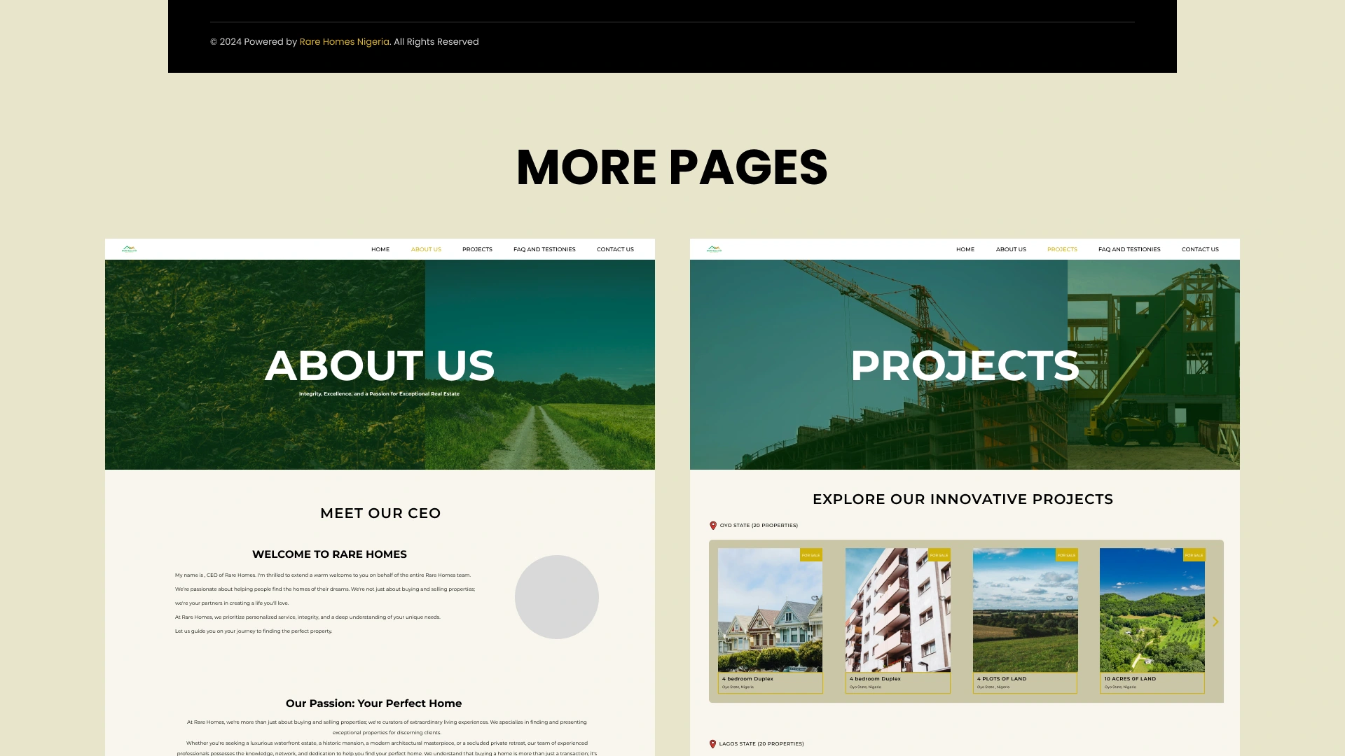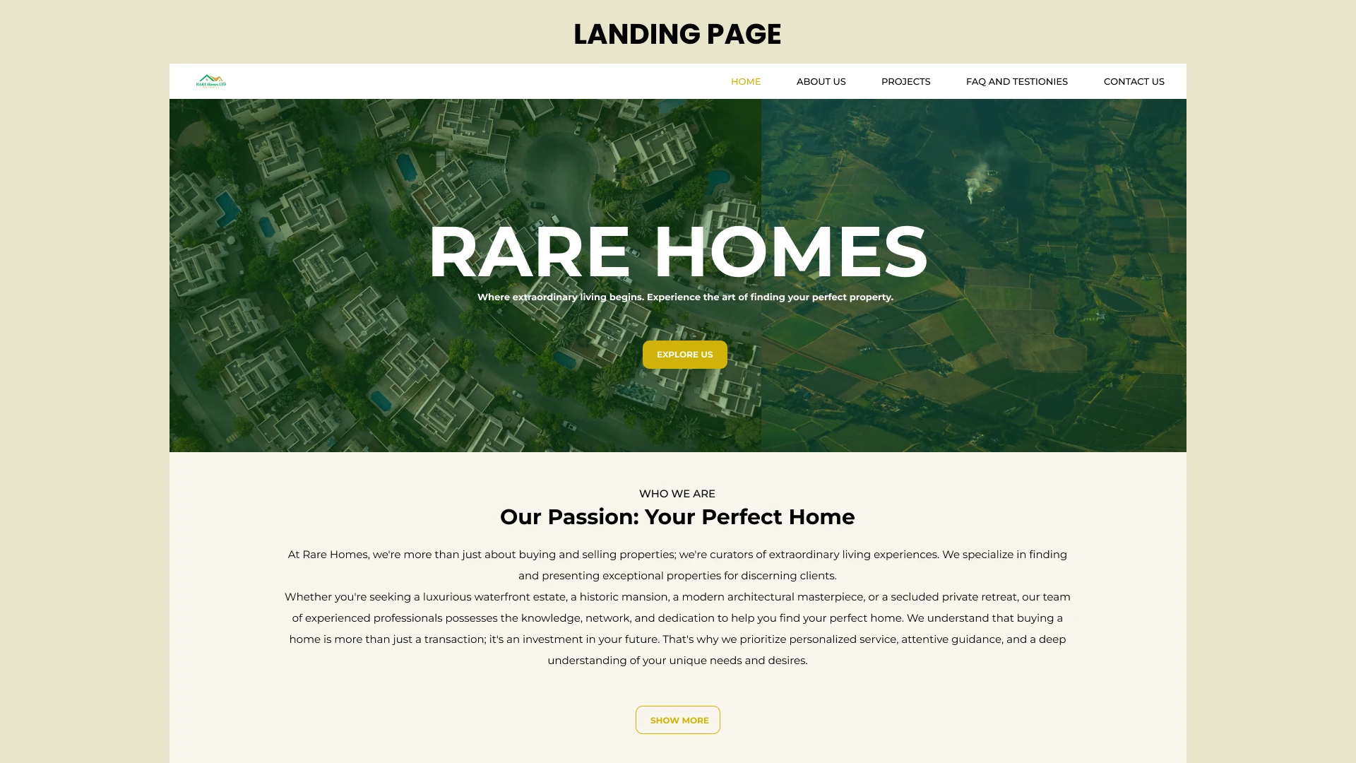 RARE HOMES ESTATE connects buyers and sellers with premium properties through a modern, responsive, and easy-to-use real estate website.
