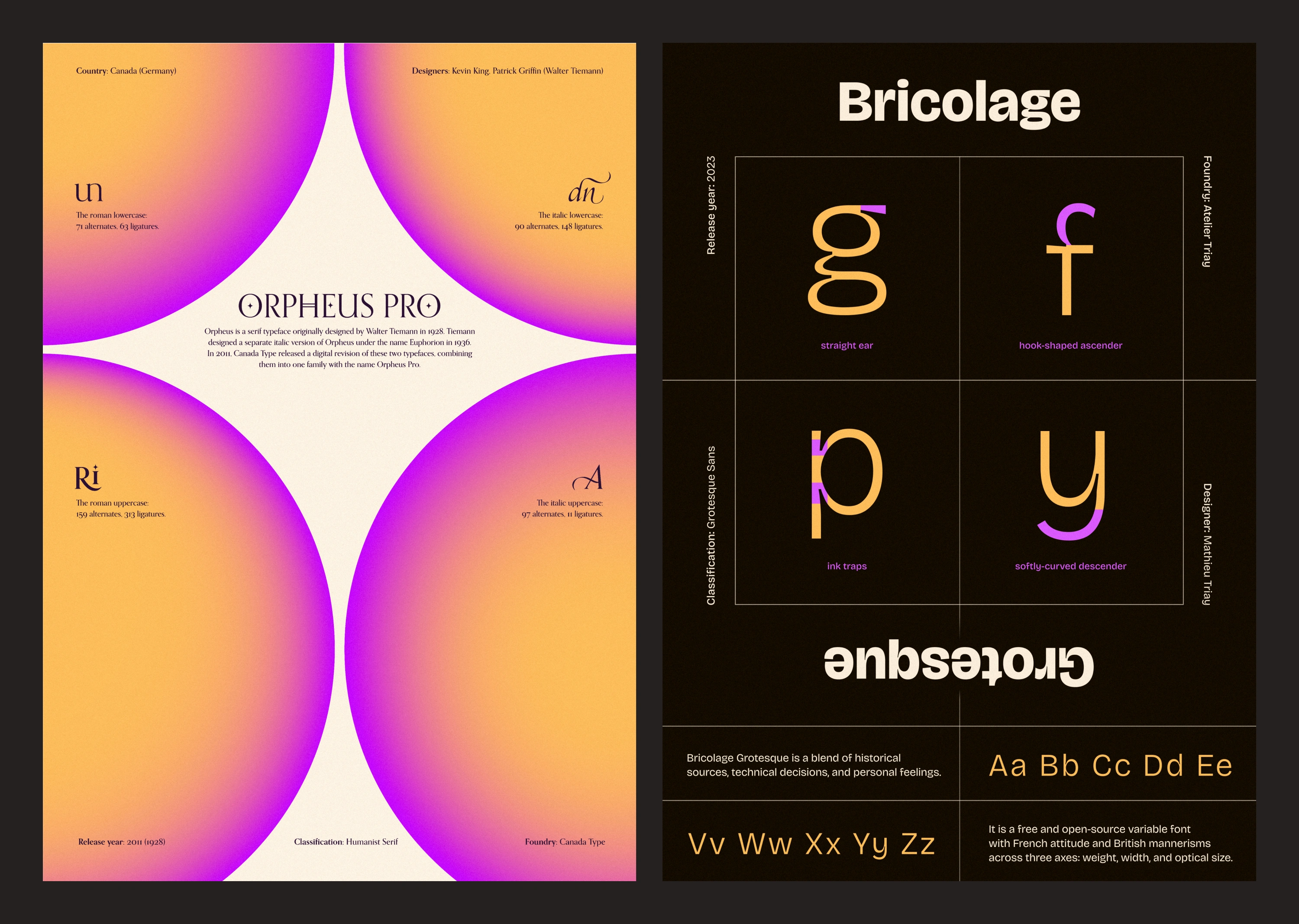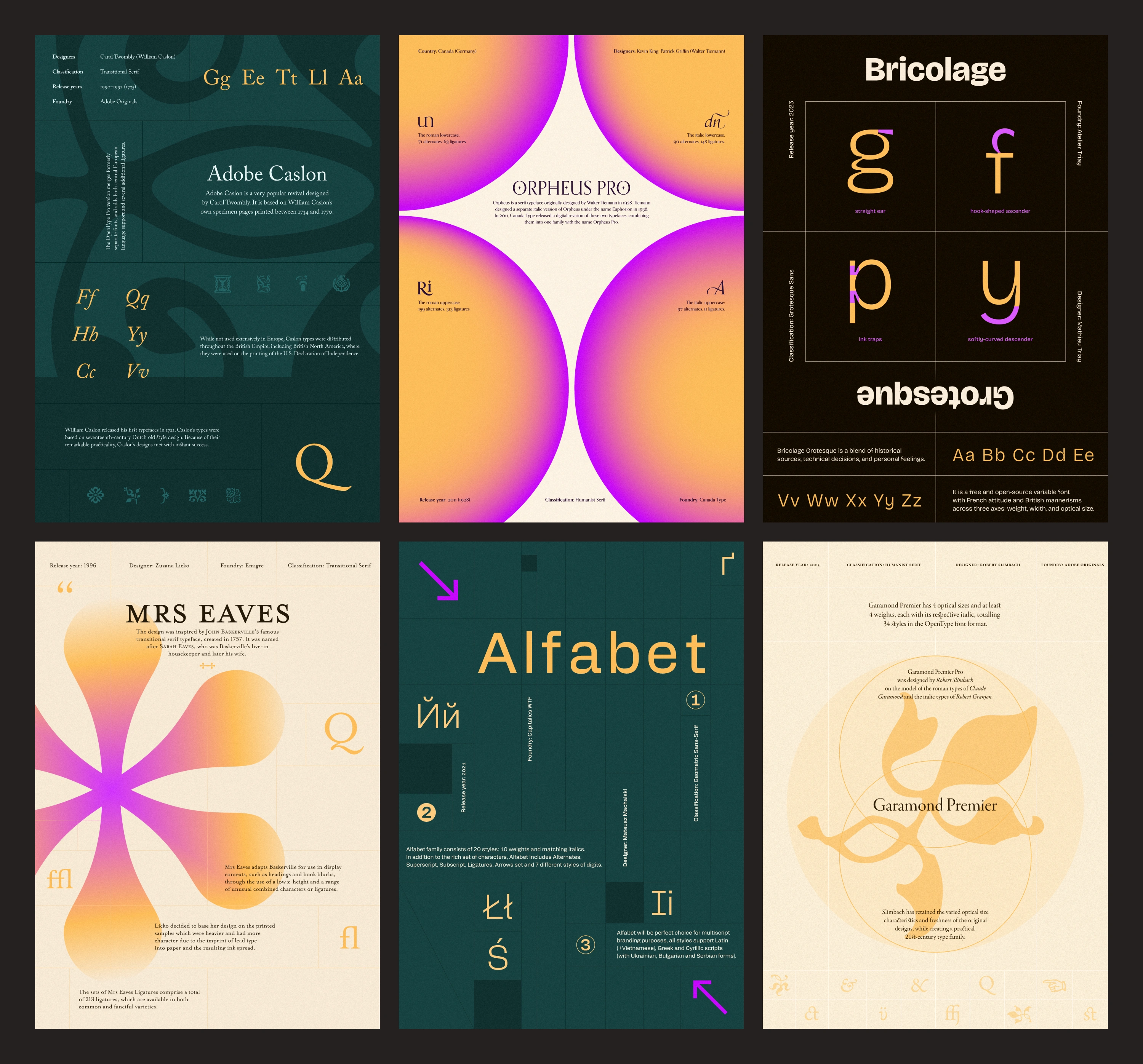 Typography is more than just letters on a page. It's the art of communication, the fusion of function and form. In this project, I have created a series of 6 posters, each showcasing a distinct typeface. These posters explore the essence and personality of each typeface, bringing their unique attributes to life.