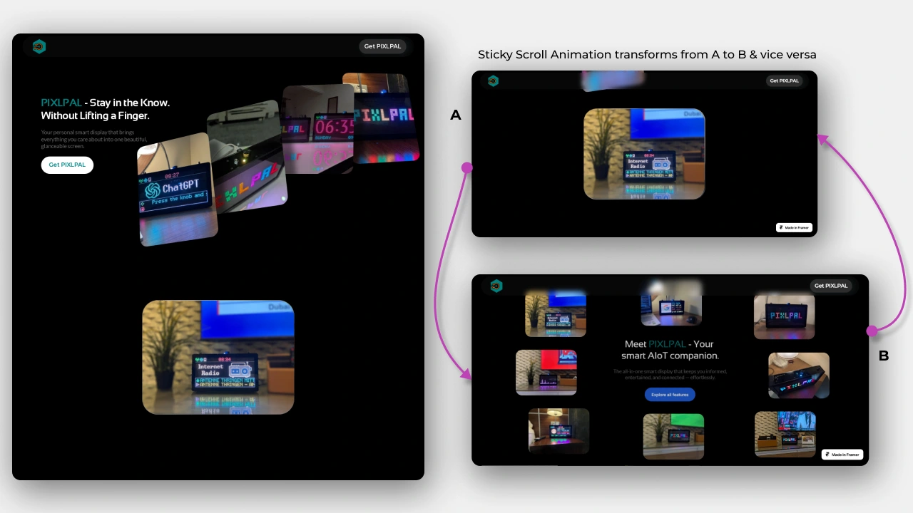 Interactive storytelling & dynamic, responsive site, featuring an engaging sticky scroll animation that intuitively transforms content from section 'A' to 'B'.