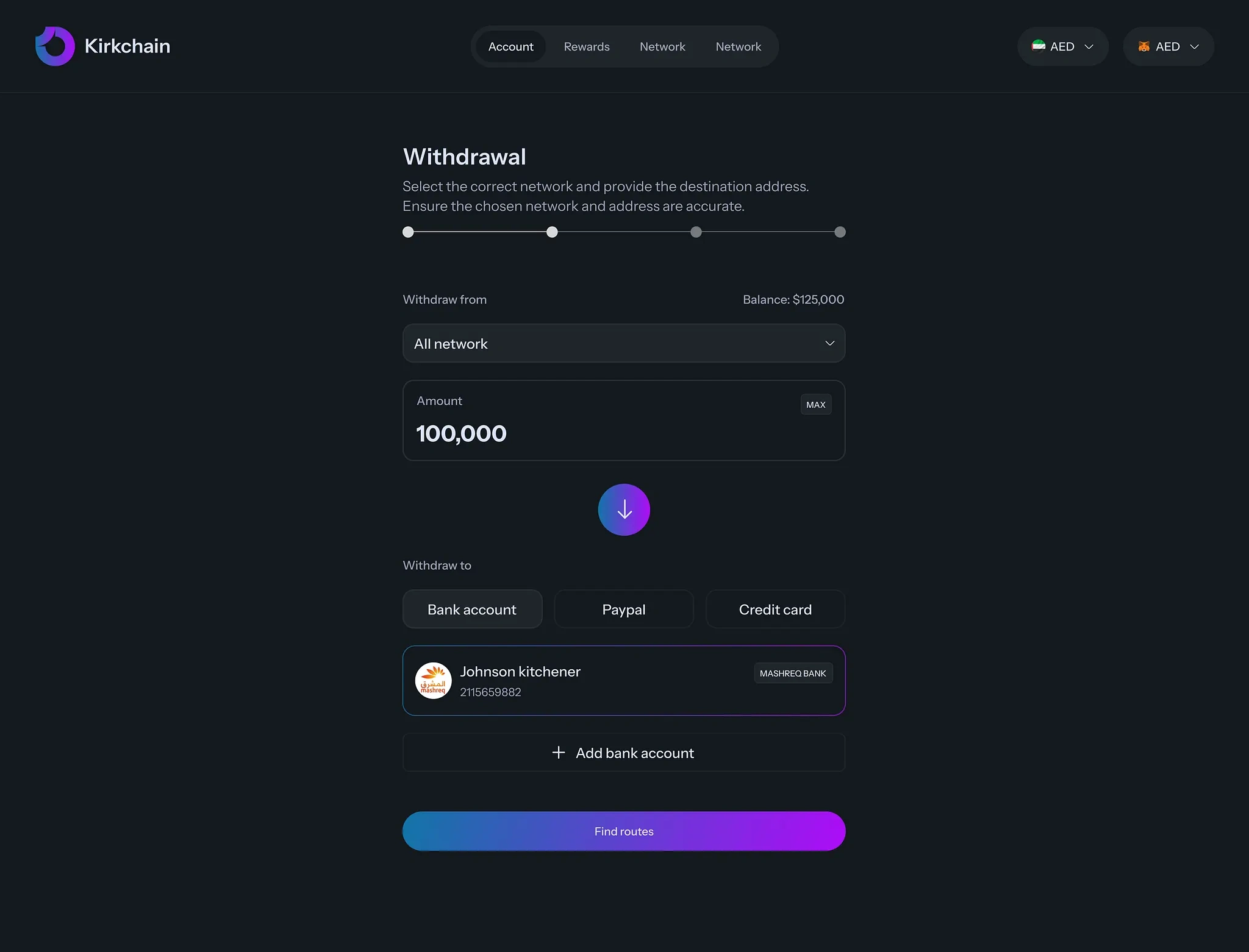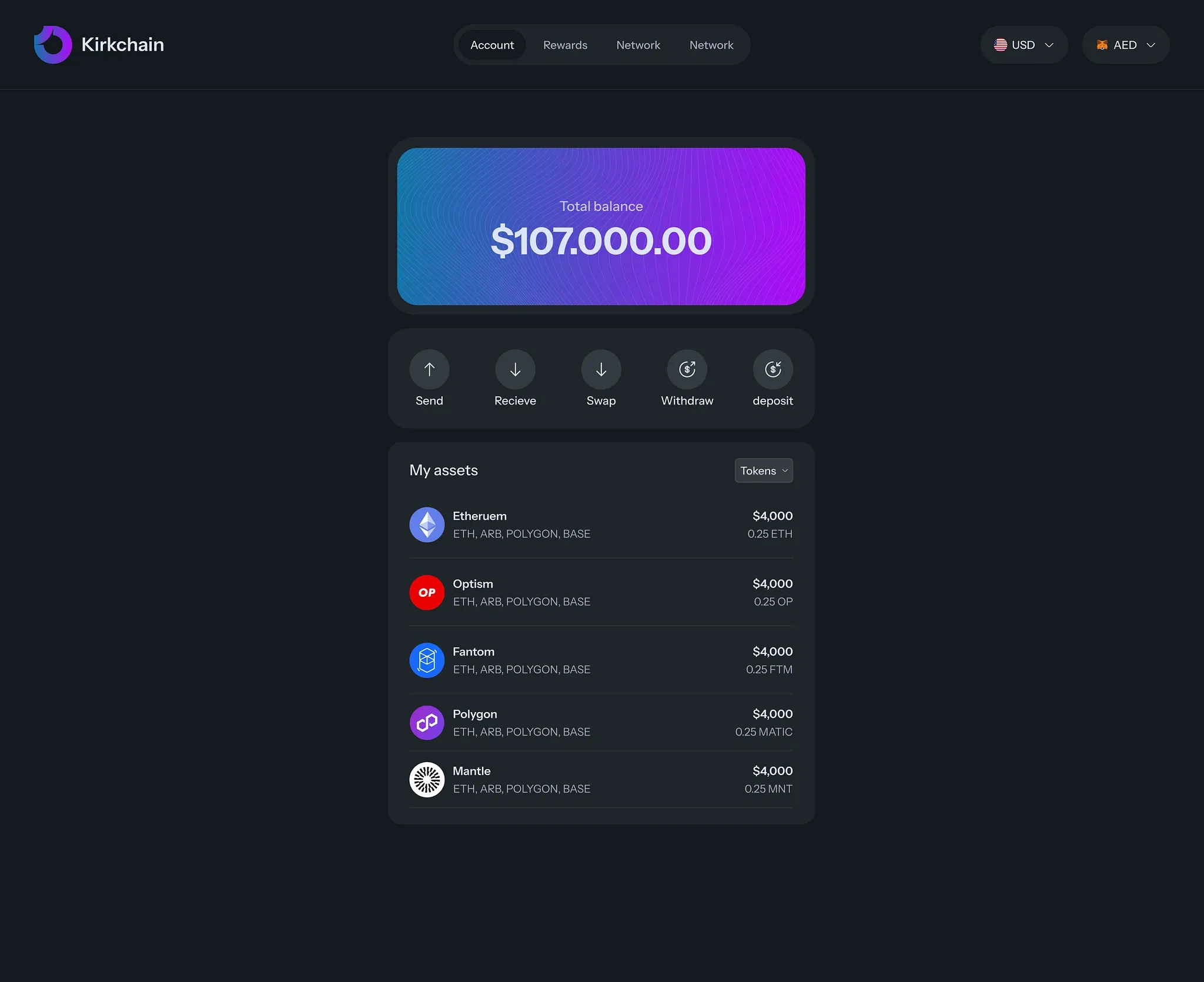 Chain Abstraction – Withdrawal Process is a clean, thoughtful UI/UX concept that reimagines how users withdraw assets across blockchains — hiding the complexity of multiple networks behind a simple, unified and user-friendly interface. Rather than forcing users to select chains, tokens, bridges, and gas fees manually, this design abstracts away those details, offering a smooth, frictionless cross-chain withdrawal flow.