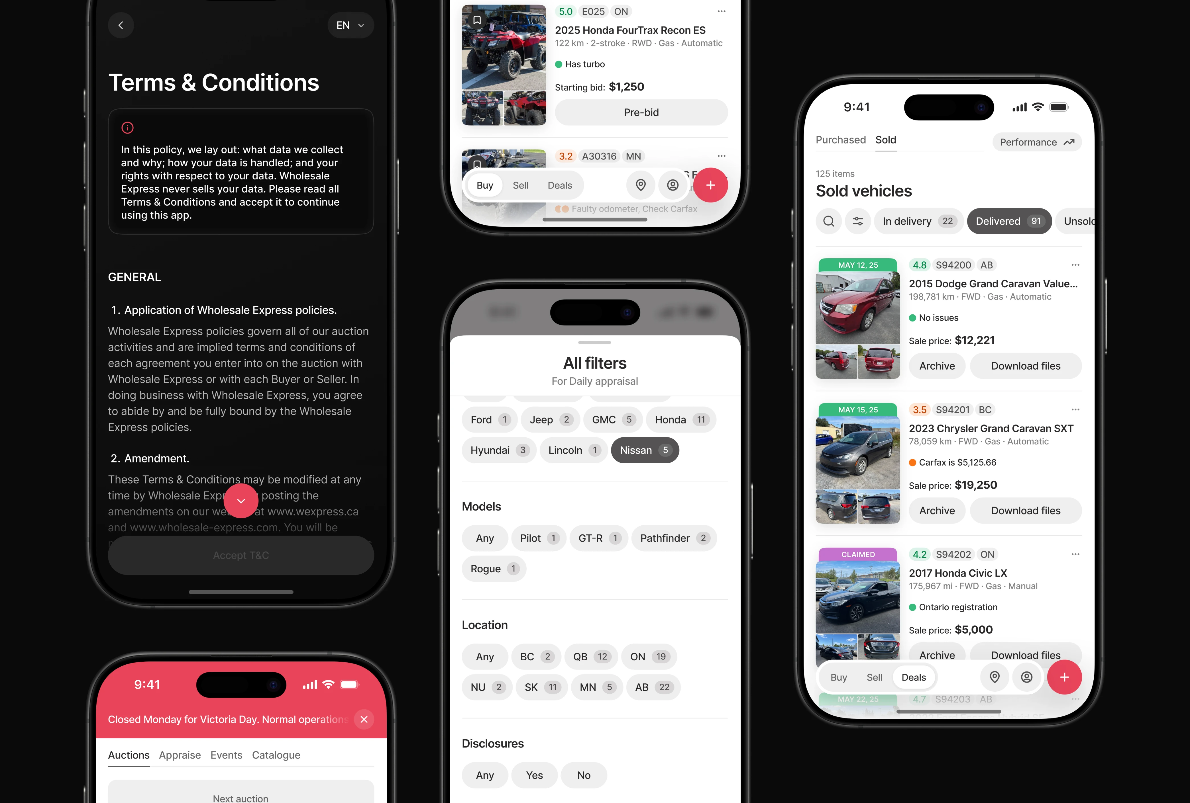 WholesaleXpress is a Canadian marketplace focused on live auto auctions, where car dealers buy and sell used vehicles.