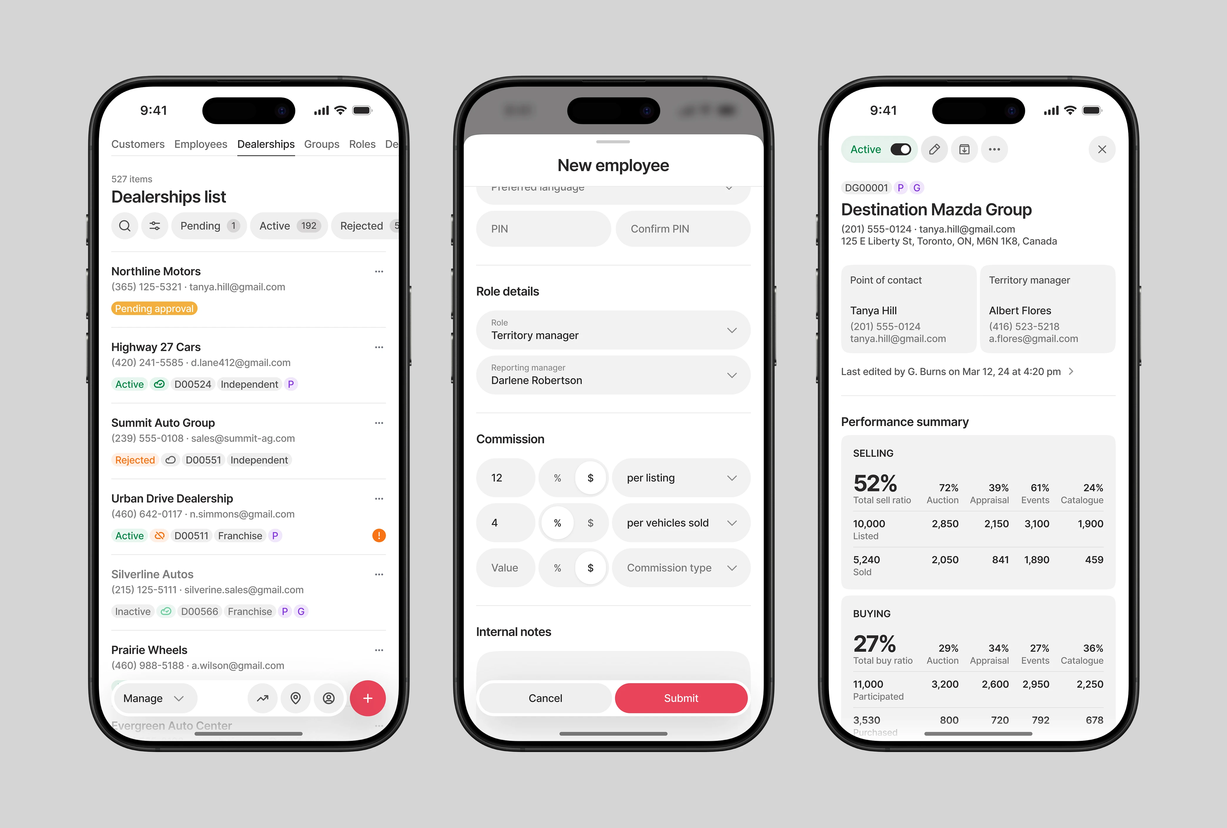 For 2 years, I worked as the sole sr. product designer and led a full redesign of the platform (web, mobile app, internal tools, and core workflows), but this case study is about the mobile side. We rebuilt the app from the ground up to make it easier for dealers to sign up, list cars, buy/sell, bid, and manage inventory right from the lot.
