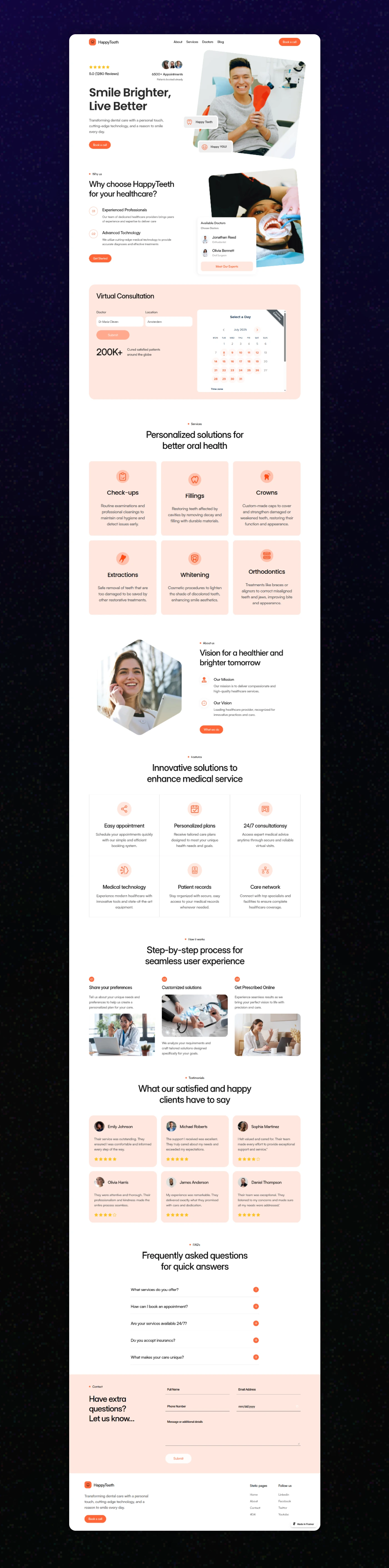 Improved user experience, increased trust through visuals, and created a professional online presence that positions HappyTeeth as a reliable dental brand.