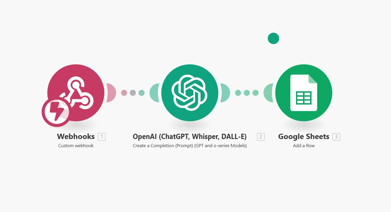 Automated data processing pipeline using AI and Google Sheets.