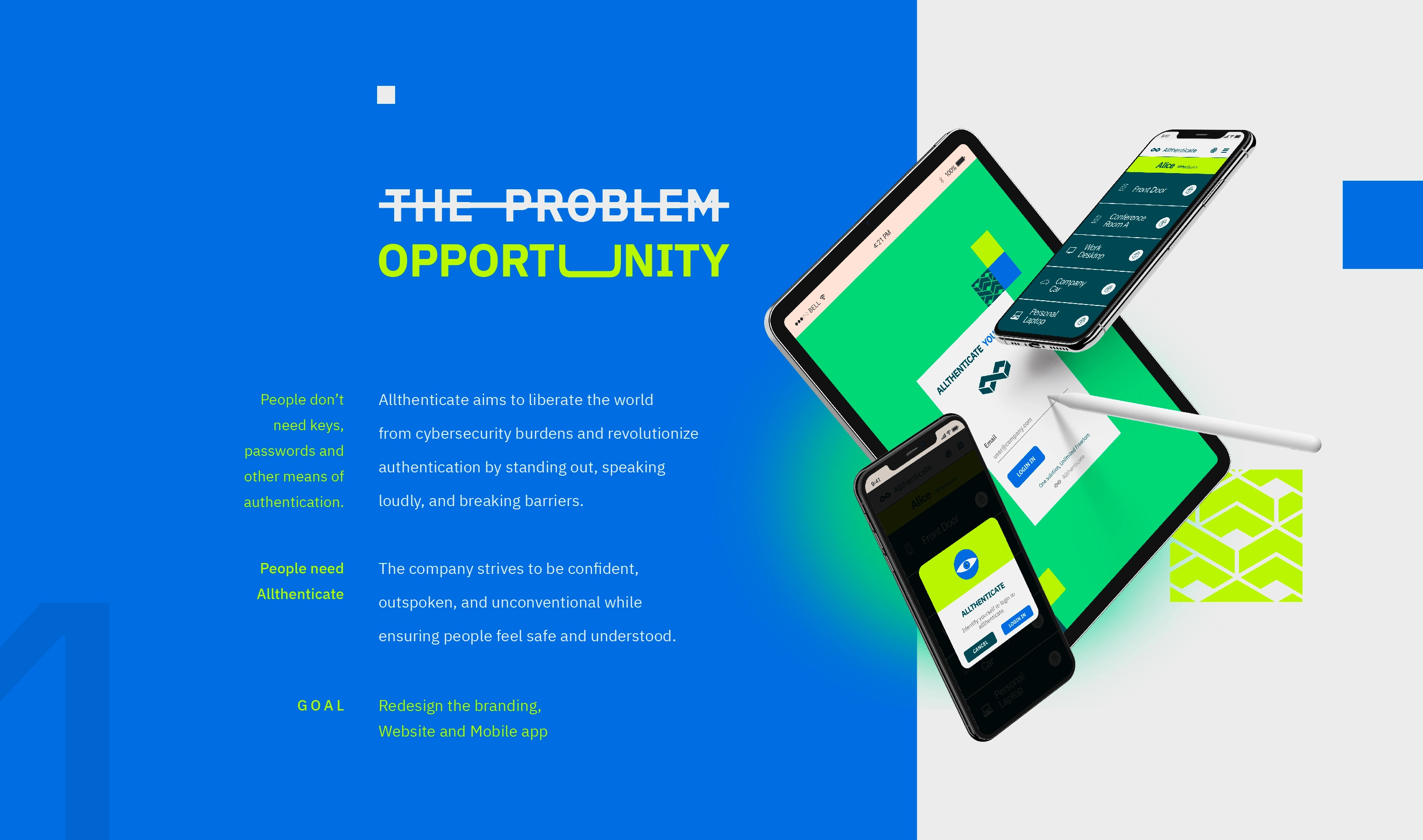 Our Goal: Redesign the branding, Website and Mobile app for Allthenticate, a startup that offers Single Device Authentication (SDA) technology.