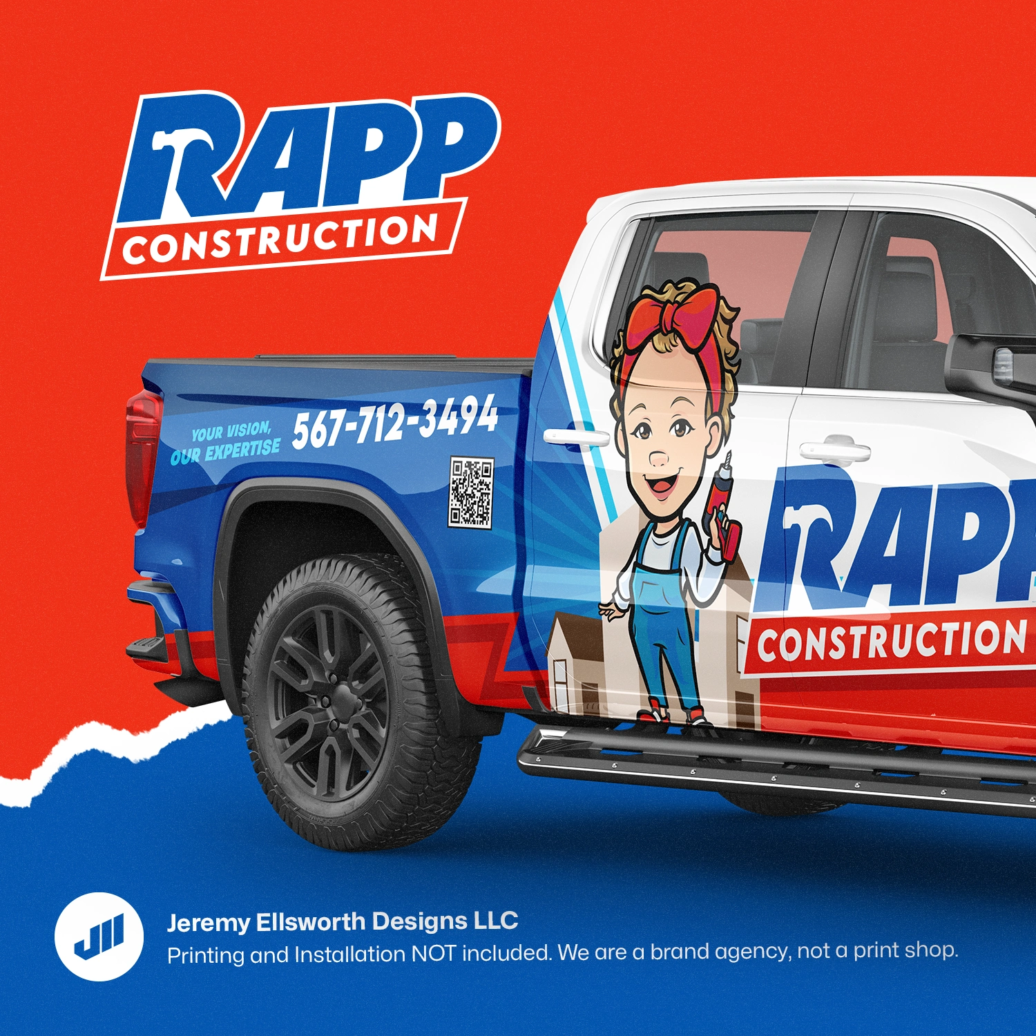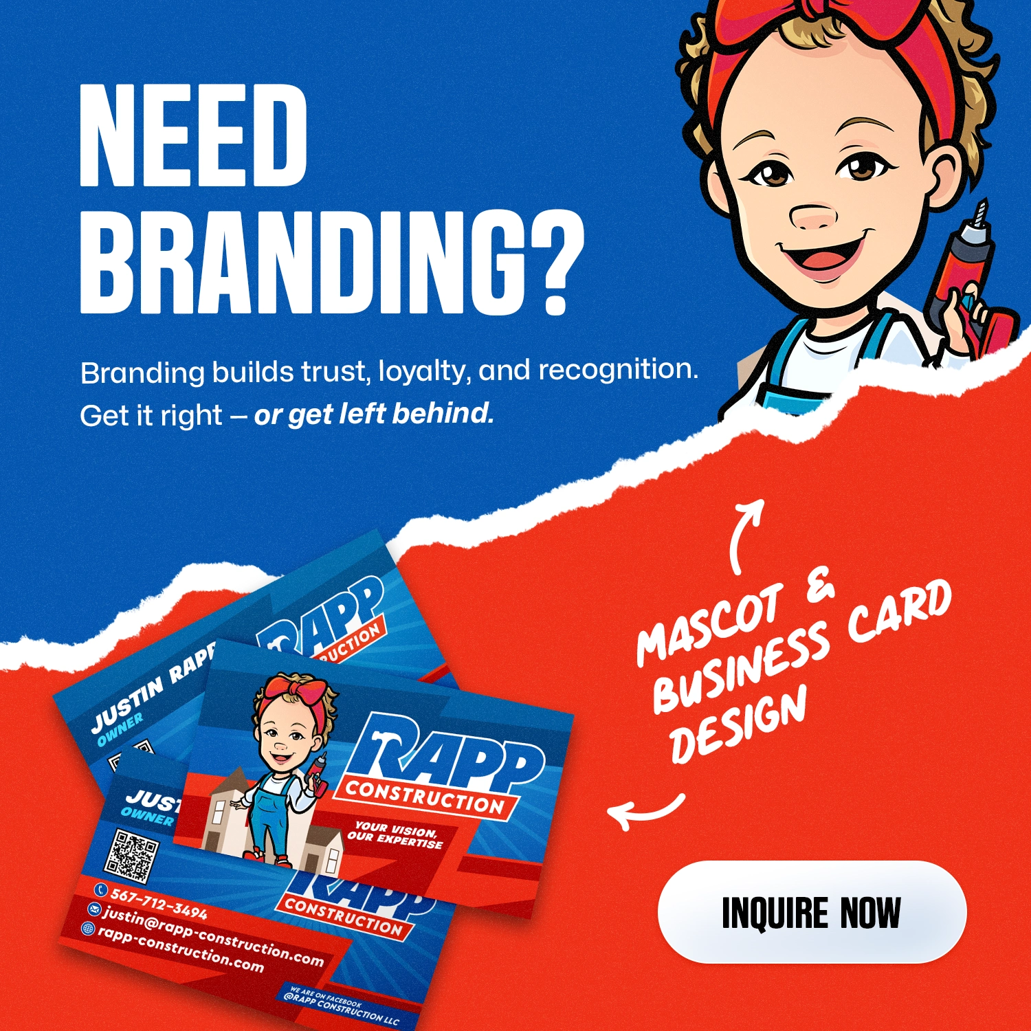 We built their brand from the ground up, starting with a strong, memorable logo and a mascot that gives the business a touch of personality. From there, we rolled it out everywhere: a truck wrap you can’t miss, shirts that pop on the job site, business cards that don't get thrown away, review cards, brochures, postcards, a bold Facebook presence, and even a website banner that ties it all together.