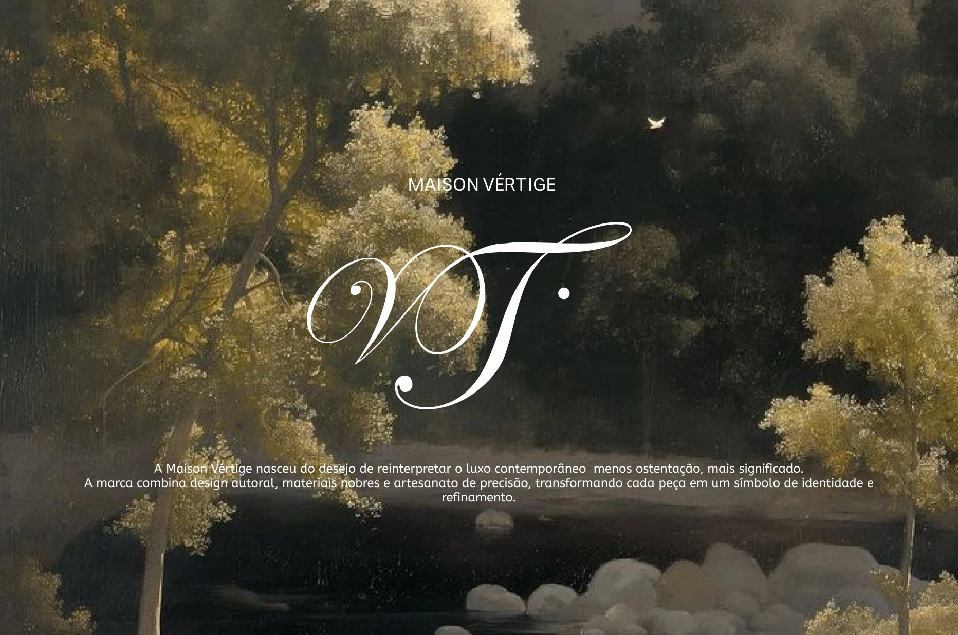 O monograma VT, resultado da união das letras de Vértige, atua como um selo de identidade autoral: fluido, preciso e profundamente conectado ao artesanato e à sofisticação discreta.