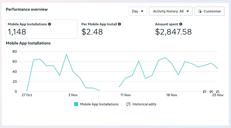 CPI testing first → then scaling into cost-per-action campaigns