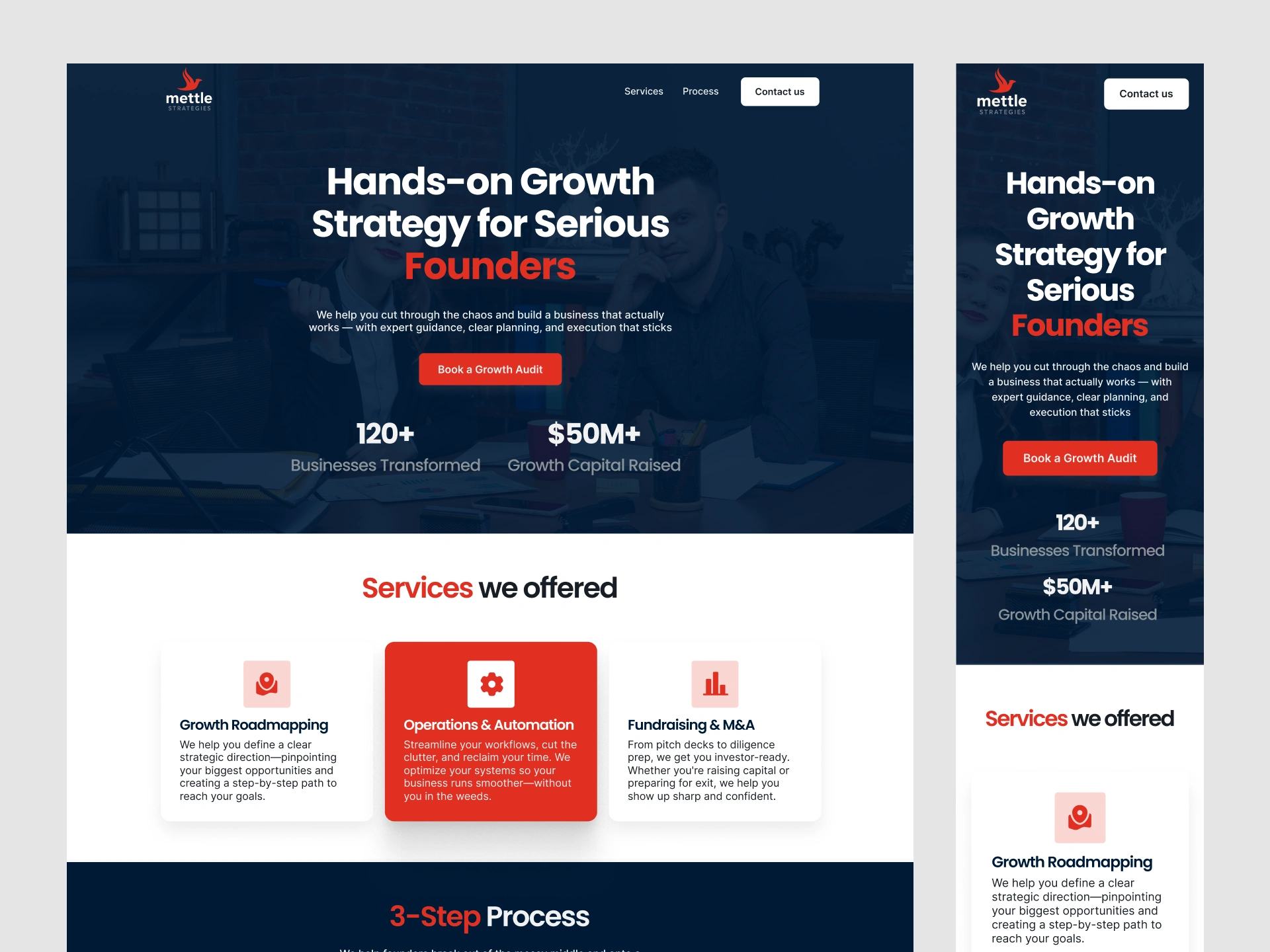 I designed a clean landing page for Mettle Strategies that builds trust and drives leads through a clear, conversion-focused flow.