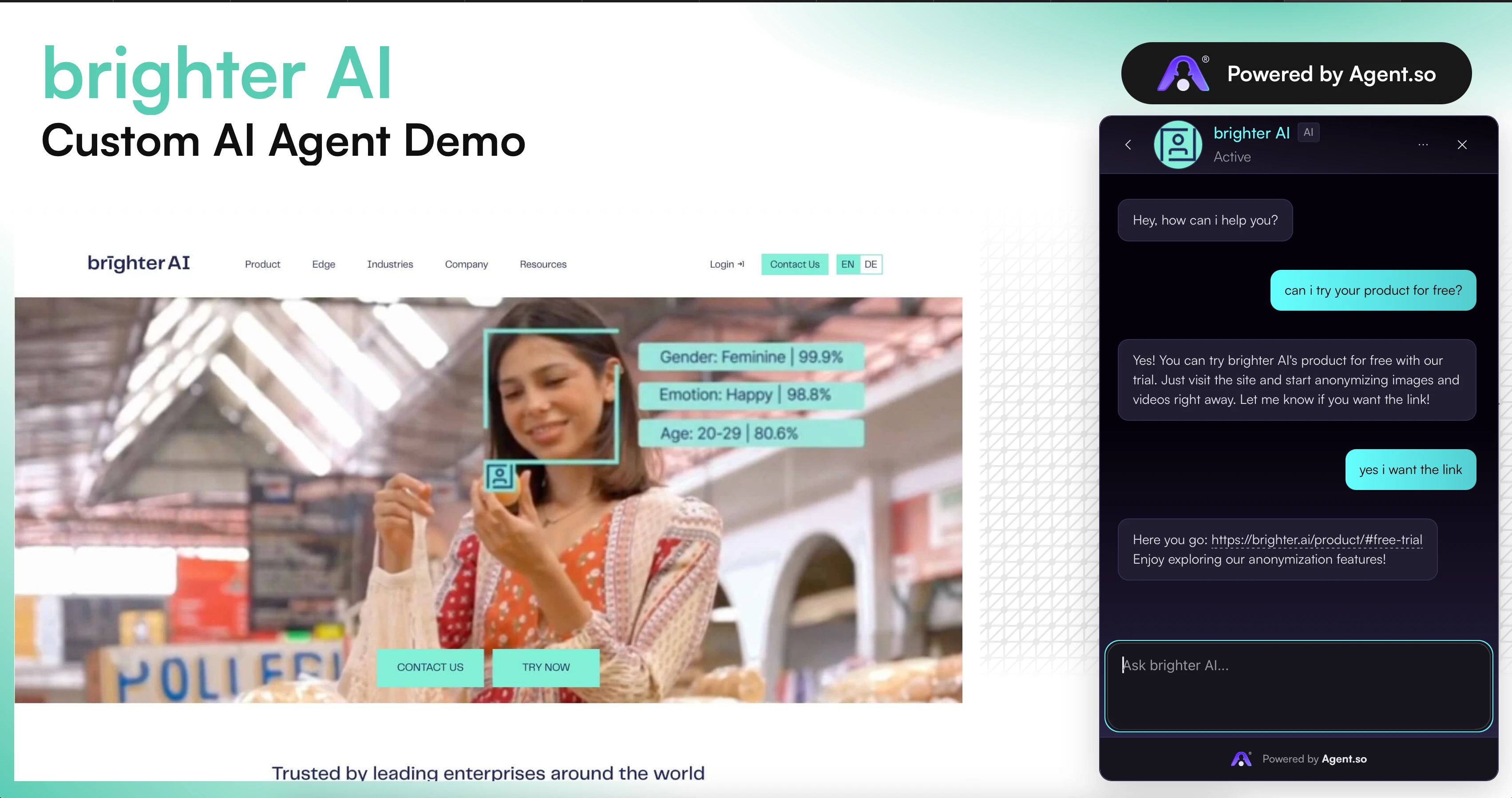 Sebastian Marina showcasing a project for brighter AI to modernize its support & operations using AI Agents. You can try the brighterAI custom AI Agent here.