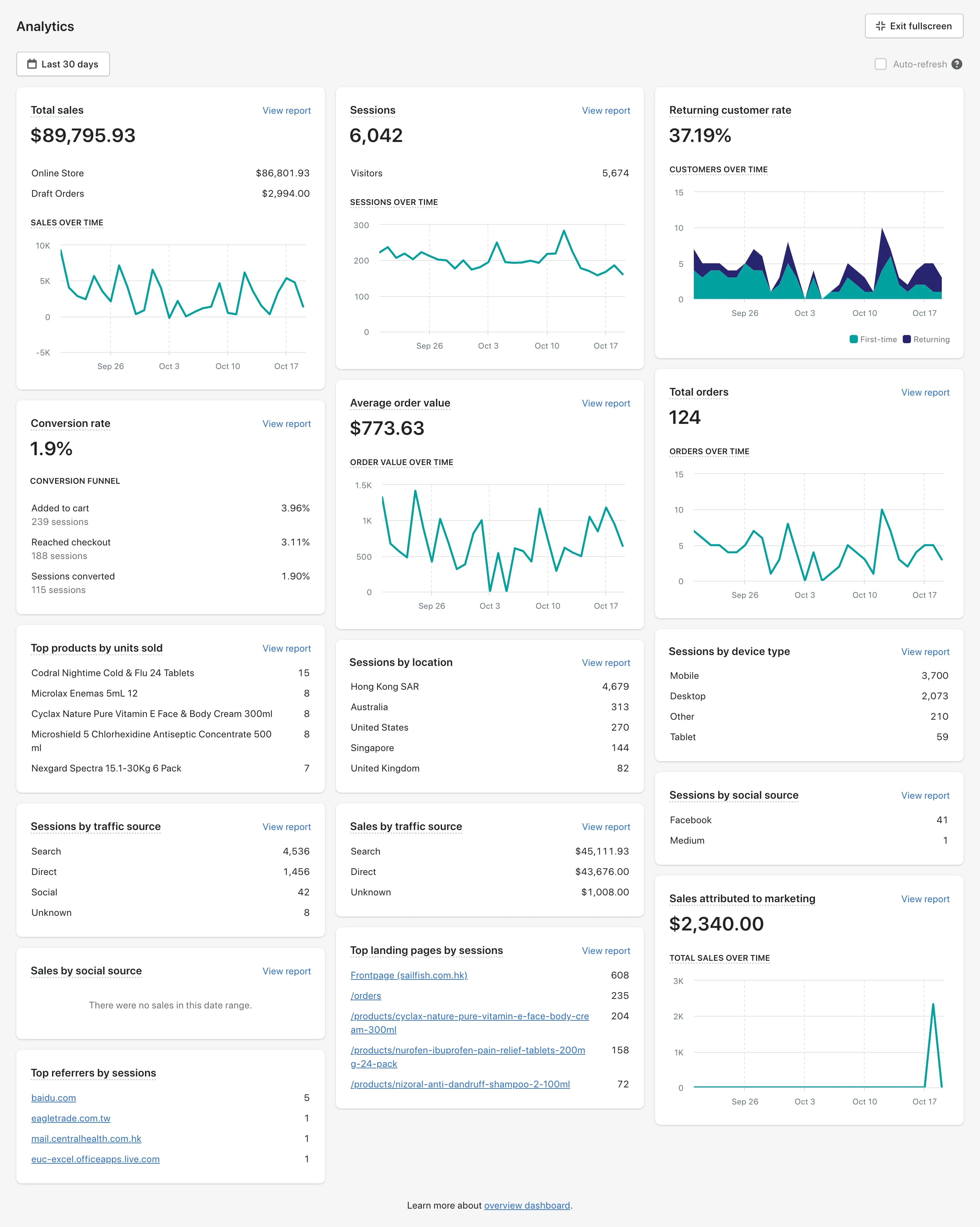 We provided insights into customer behavior and channel performance to maximize profitability. Within a 30-day period, our strategic interventions yielded substantial results, demonstrating clear growth and efficiency for the client's online store: Total Sales: Achieved $89,795.93 in online sales. Conversion Rate: Secured a 1.9% conversion rate from 6,042 sessions, turning visitors into valuable customers. Average Order Value (AOV): Maintained a strong $773.63 Average Order Value, indicating effective product positioning and customer purchasing habits. Customer Loyalty: Ensured a robust 37.19% returning customer rate, highlighting successful customer retention and repeat business. Total Orders: Processed 124 successful orders, reflecting strong customer engagement and purchase completion.