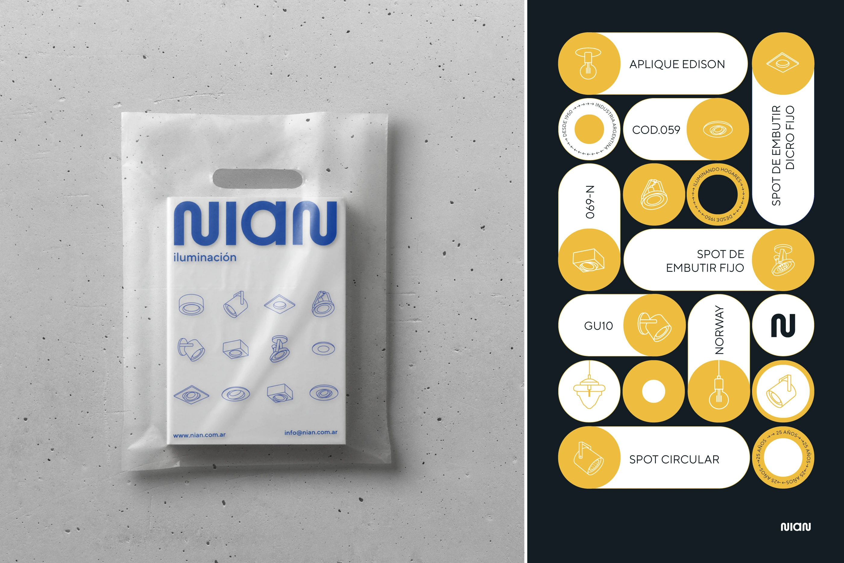 The new brand aims to generate a new identification, building a dialog between the trajectory and the future. For that reasons we design a system from a custom type brand of circular shapes, simple, high impact and thought to be used along diverse material supports. We generate an attractive and flexible ID from the logo, illustrations of their flagship products, as well as a new color palette.