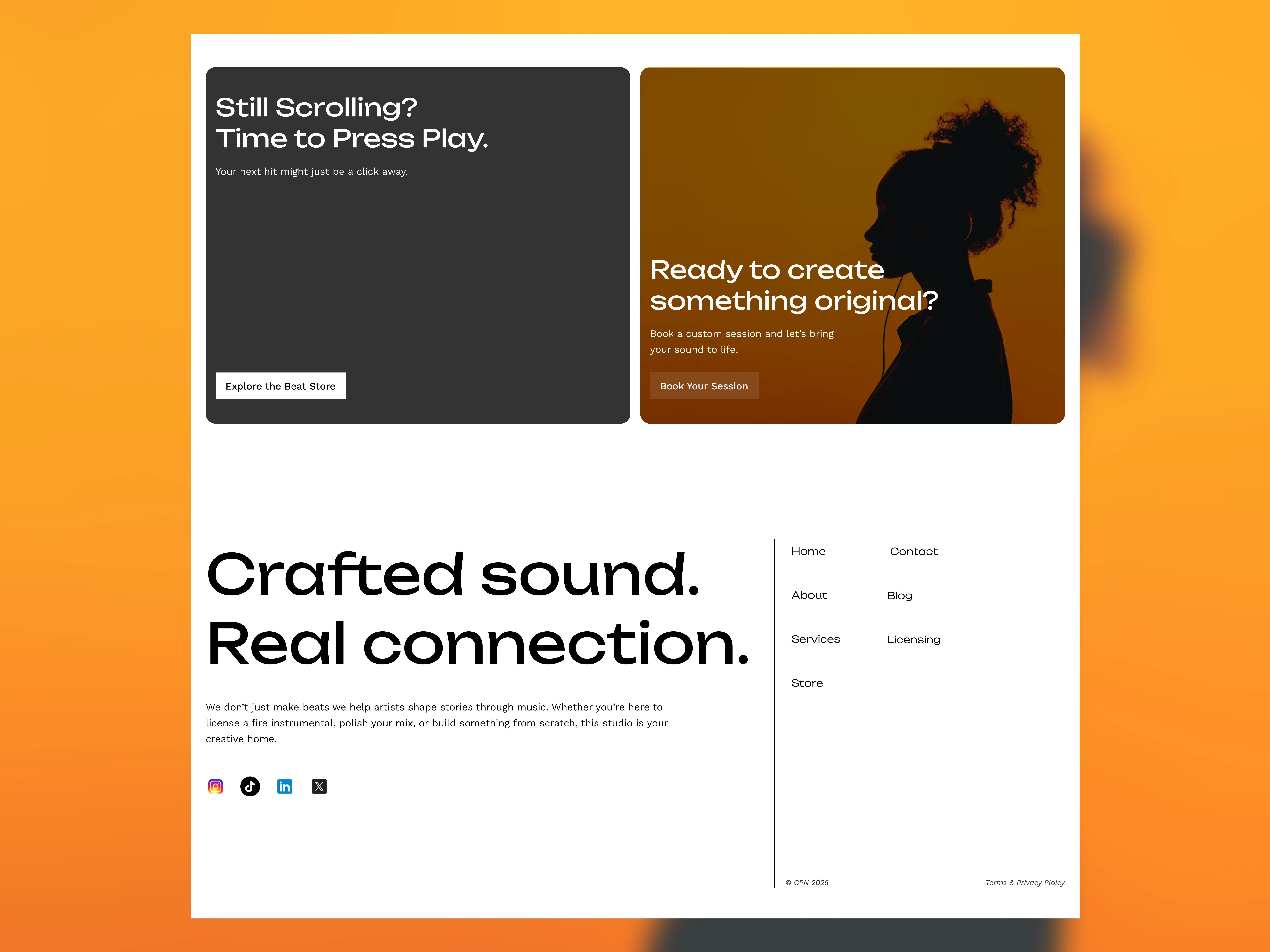 I designed and built a conversion-focused website for a music production studio offering beats, mixing & mastering, custom production, and songwriting services. The goal was to create a premium digital presence while enabling artists to license and purchase multiple beats seamlessly.