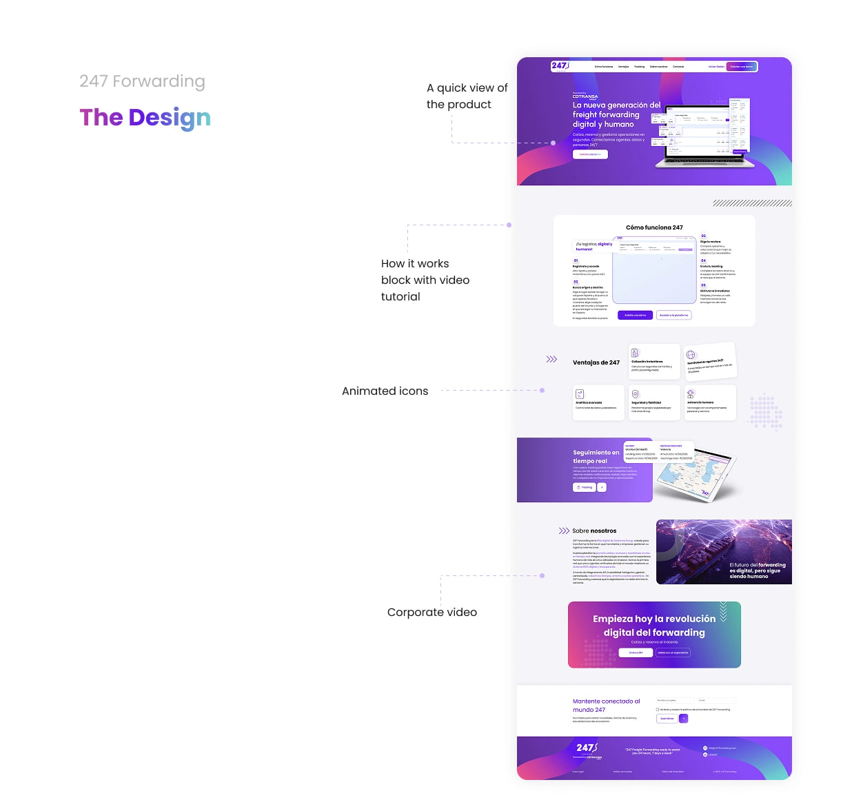 One of the key objectives is to showcase the product, its features, and everything the platform can do to improve your business's export and import operations. We use a modern, minimalist style with clear content blocks so users don't miss anything, understand the product quickly, and are motivated to request a demo.