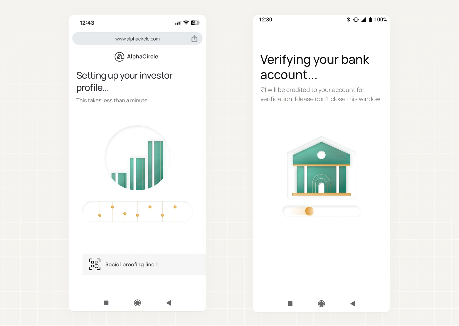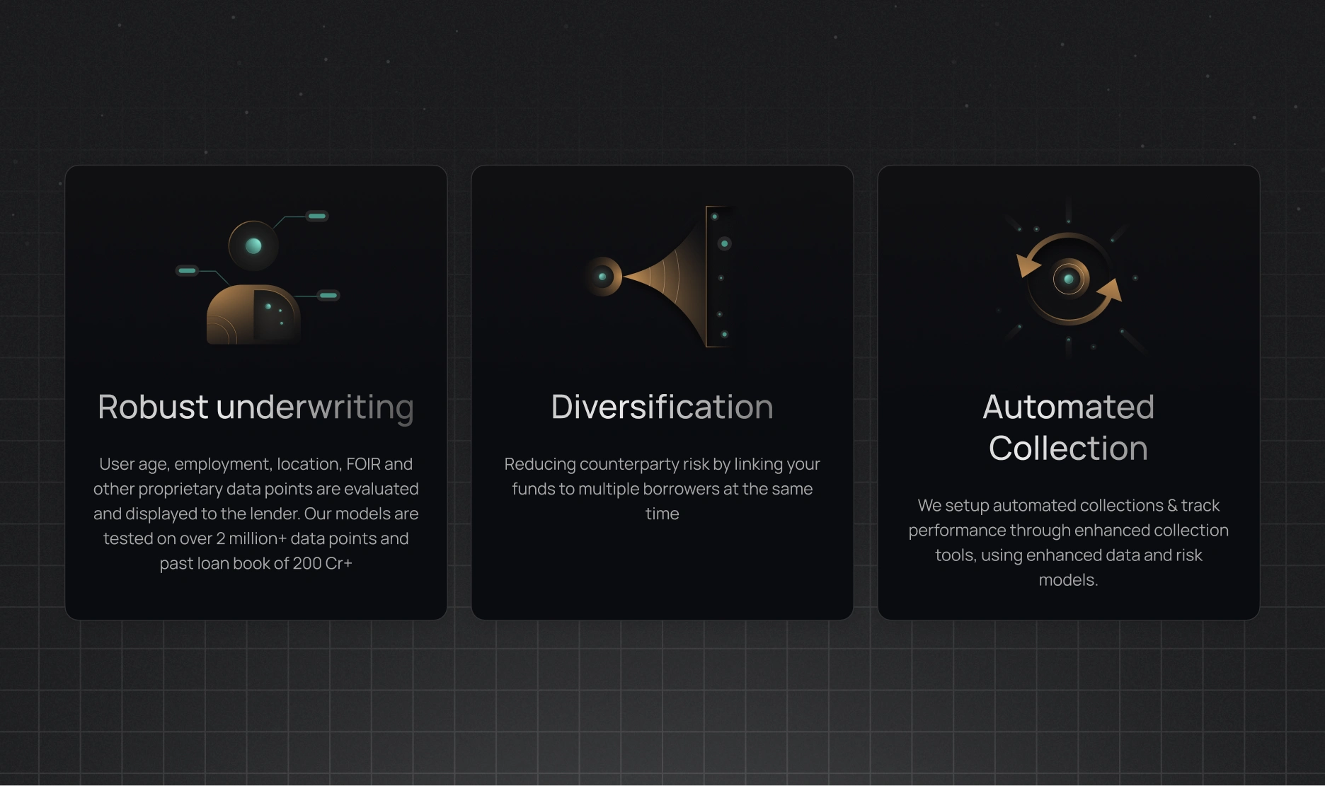 Below I have shown some of the loader & static states for bother investors and borrowers as they would onboard on the platform. The visuals for this product was slightly different from our core product, being more sophisticated and premium.
